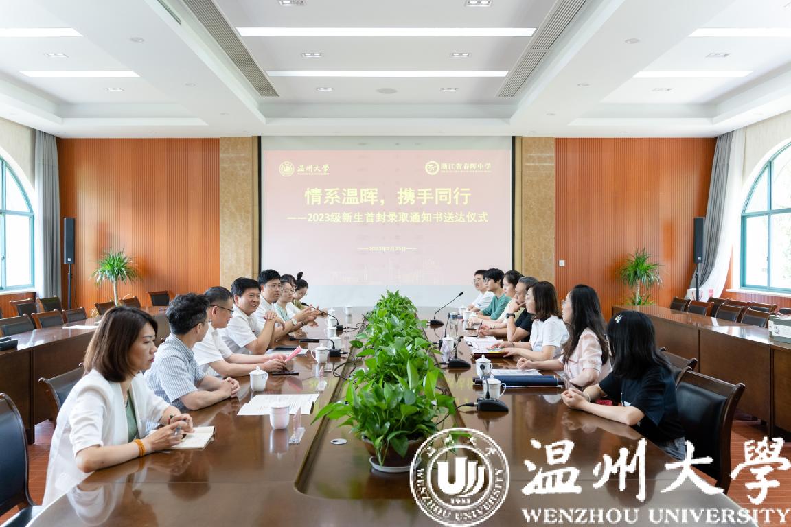 庄兴忠表示,春晖中学有着深厚的人文底蕴,在115年的办学历程中,一直秉持教育创新的传统。他对即将加入温大大家庭的三位同学表示欢迎,对春晖中学注重教学改革、重视学生全面发展的办学理念表示赞赏,并对春晖中学多年来向温大输送大量优秀学子表示衷心感谢。近年来,师资定向录取分数节节攀升,看到越来越多的优秀学子志愿投身杏坛,加入基础教育建设的队伍,感到由衷欣慰。借此契机,ac米兰官网中文网站与浙江省春晖中学进行了优质生源基地签约授牌仪式,希望能够开展多层次、多方位的友好交流合作。