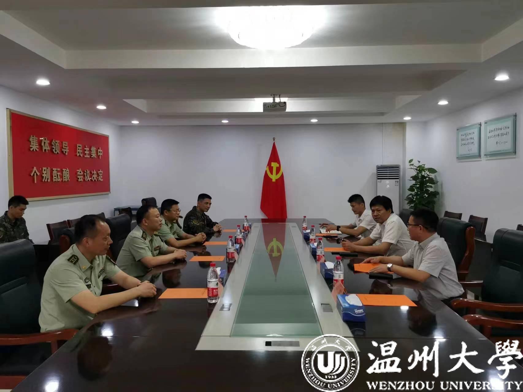在中国人民解放军建军96周年来临之际,为扎实做好“八一”期间双拥工作,进一步密切军校关系,7月28日下午,校党委副书记庄兴忠一行走访武警温州支队,代表全校师生向官兵们致以节日慰问。庄兴忠一行受到了武警支队的热烈欢迎,并与支队长宋雅军、政委伍德胜等领导进行座谈交流。