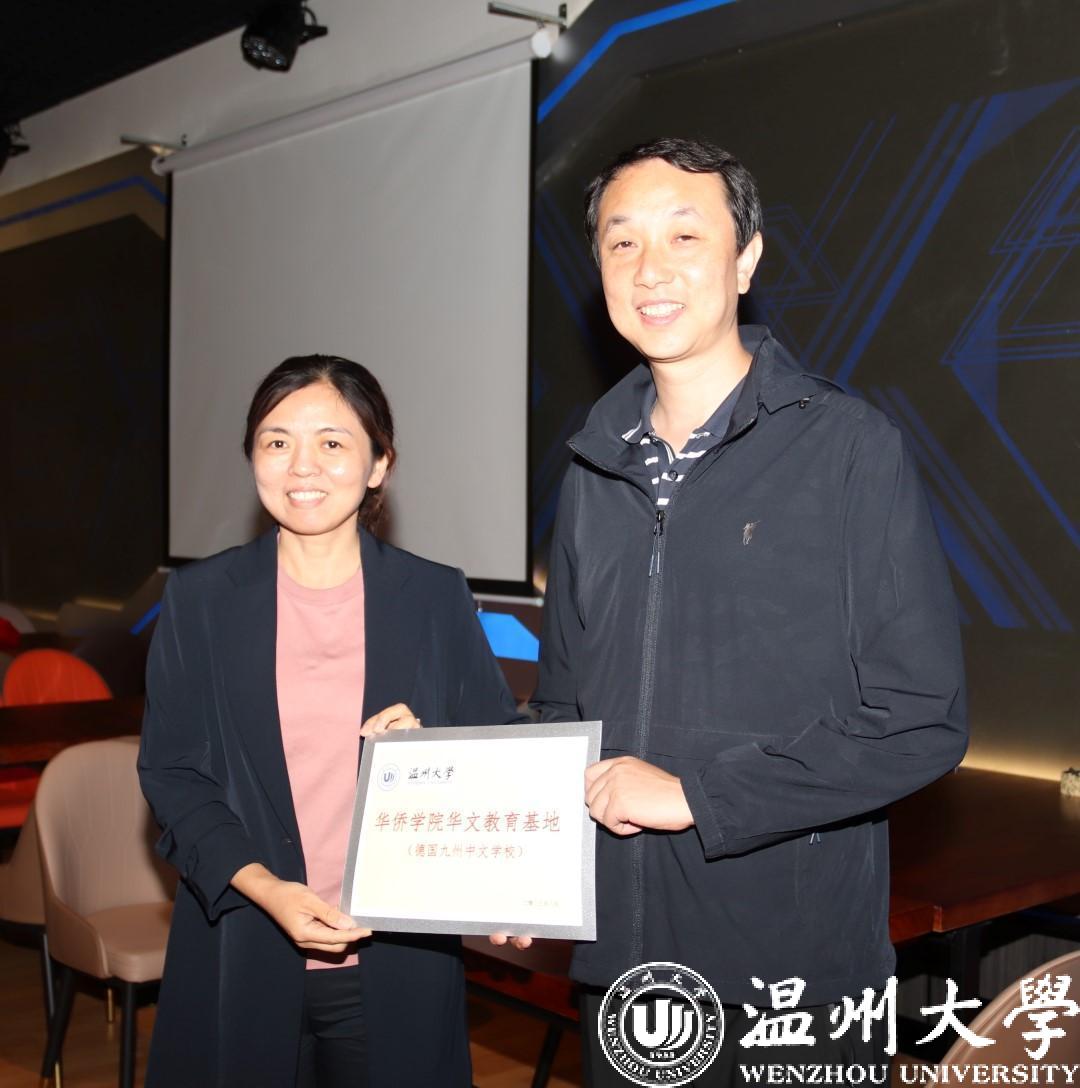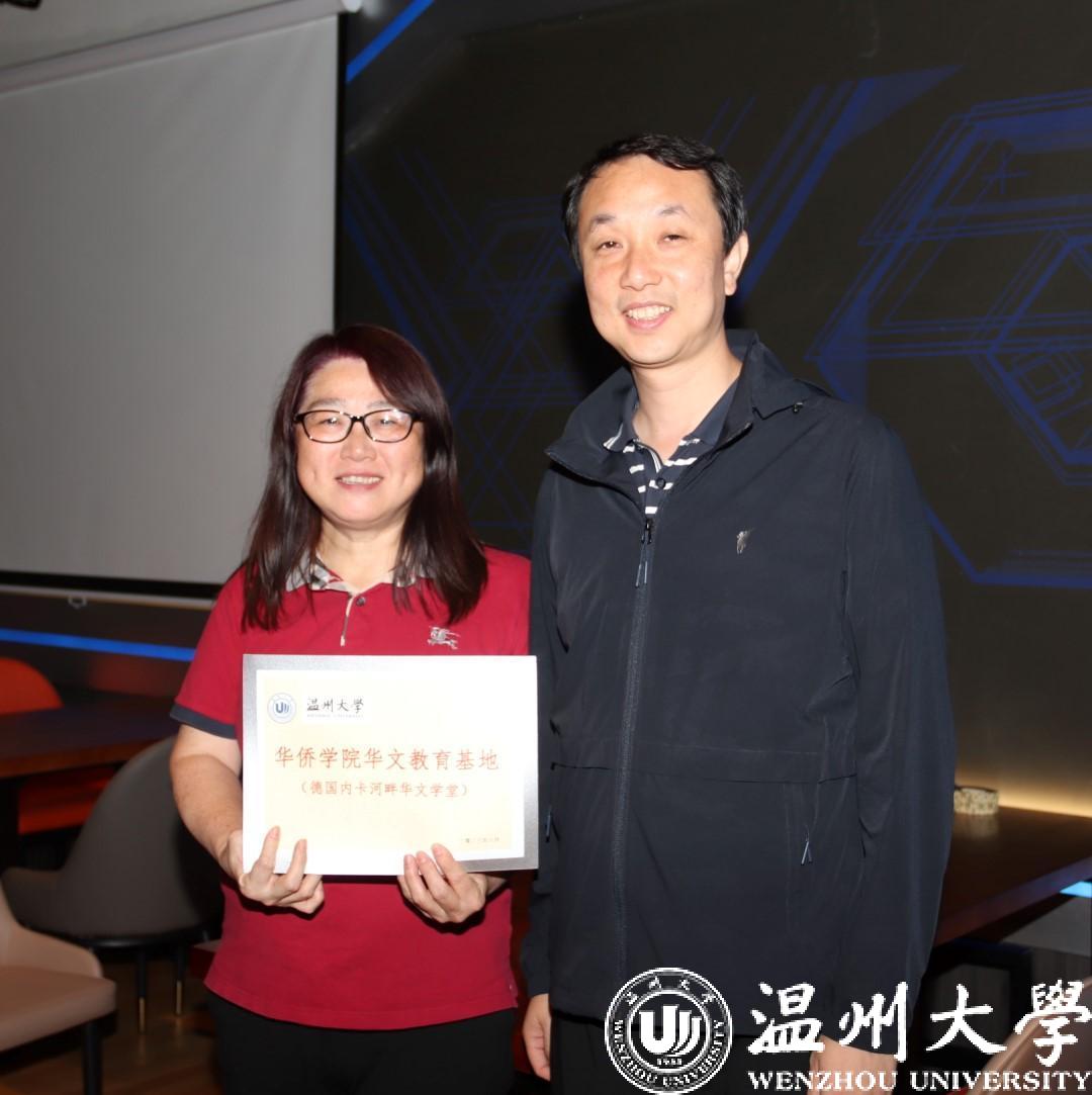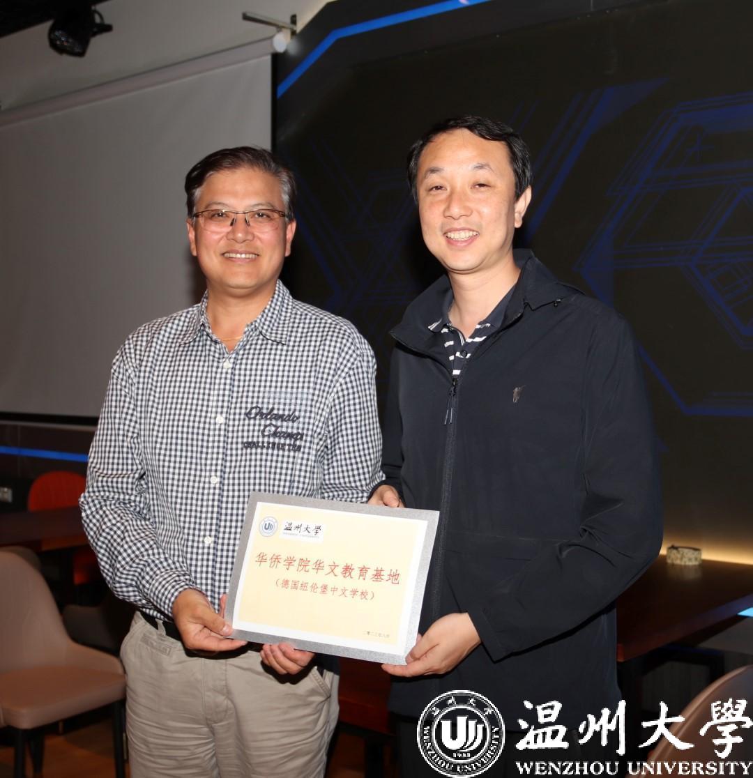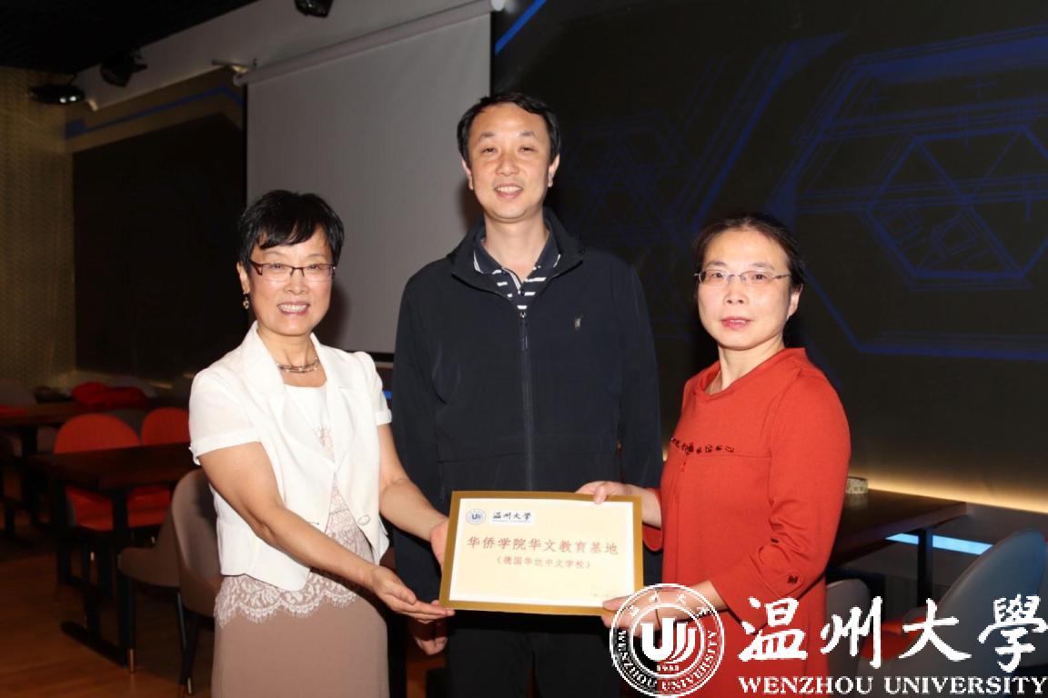 8月29日,ac米兰官网中文网站党委书记张健带队赴德国举行华文教育基地揭牌仪式,并为ac米兰官网中文网站华侨学院兼职研究员颁发聘书、ac米兰官网中文网站第三届“我和华文教育”征文比赛获奖教师颁奖。发展规划处、国际交流与合作处、华侨学院及机电工程学院实验教学中心负责人参加揭牌仪式。