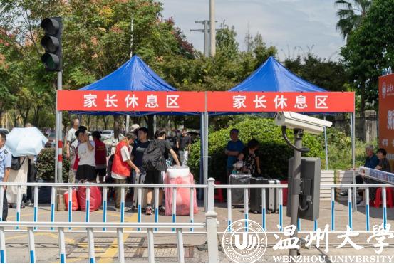 五个生活区报到处,各学院、部门早早搭建好帐篷,志愿者们为新生办理入学手续提供耐心的引导,给予“一站式”服务。天气炎热,学校周到地设立家长休息区,让家长和新生暂作休息,倍感贴心。