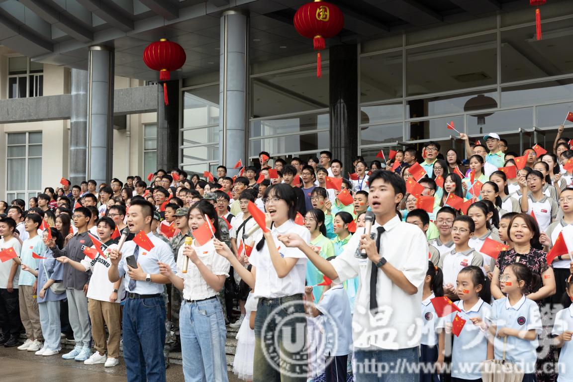 “五星红旗迎风飘扬,胜利歌声多么嘹亮,歌唱我们亲爱的祖国,从今走向繁荣富强……”仪式最后,全场师生挥舞着手中鲜艳的国旗,共同唱响《歌唱祖国》,用歌声表达对祖国母亲的真挚祝福。