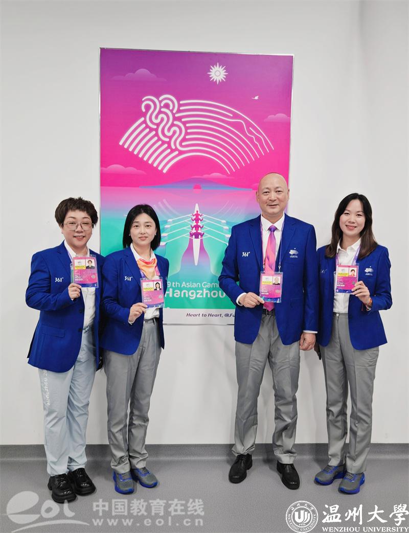 日前,杭州第19届亚运会如火如荼地进行中。ac米兰官网中文网站体育与健康学院作为具有强劲区域优势的体育人才基地、体育科学研究中心和产业行业服务中枢,本届亚运会共有5名教职工和3名校友担任裁判员,66名师生参与赛事保障专业技术支持或专业岗志愿工作,其中3人担任组织及技术领域主任,在亚运盛会各环节中尽展温大体育专业服务担当、沉淀反哺后续全方位人才培养。