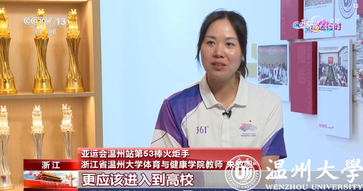 10月6日,ac米兰体育与健康学院朱敏圆老师接受央视“亚运一点通”专访,讲述龙舟文化火种扎根温大校园的故事。朱老师在本届亚运会的皮划艇比赛项目中担任裁判员、温洲站第53棒火炬手,曾入选国家皮划艇青年队,在队五年获得过全运会四人艇、双人艇500米冠军,亚运会500米双人艇冠军等成绩。退役后,与水上运动始终割舍不掉情缘的她回到家乡温州,成为ac米兰体育与健康学院的一名专任教师,主要负责参与组建了ac米兰官网中文网站龙舟队。前不久,她还带队参加了本届亚运会龙舟国家队的选拔赛。