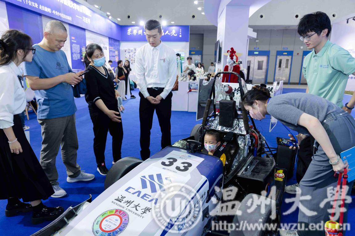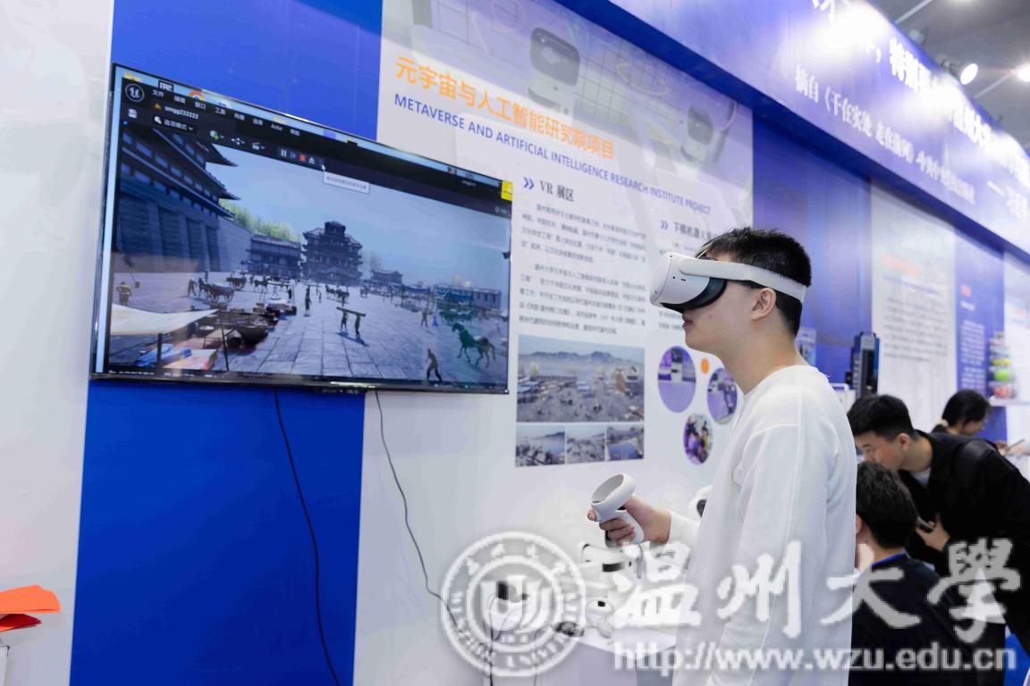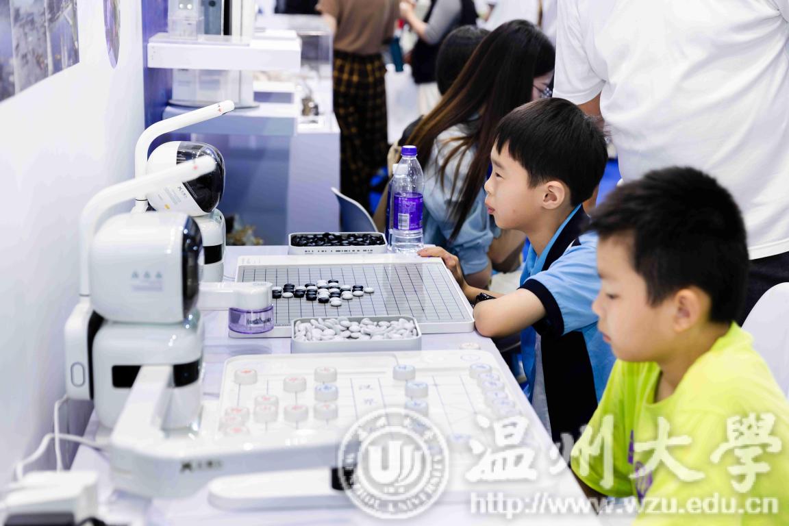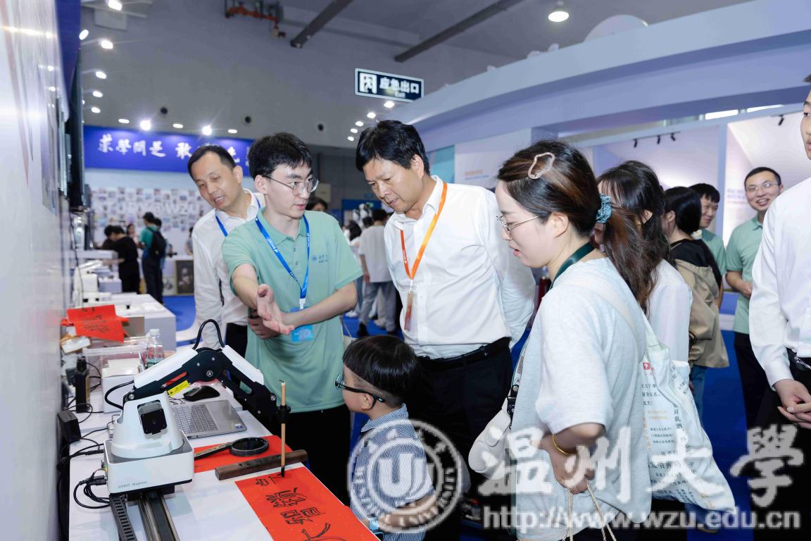 “快看!那个机器人会用毛笔写字,还有个机器人会下棋!”“哇,这辆赛车好酷!”……机电工程学院师生自主研发的魔术师书法机器人、Robocon投环机器人和疾风车队赛车,计算机与人工智能学院研发的动作捕捉系统,ac米兰官网中文网站元宇宙与人工智能研究院研发的VR展示-温州朔门古港及宋代园林和下棋机器人等作品科技感满满。