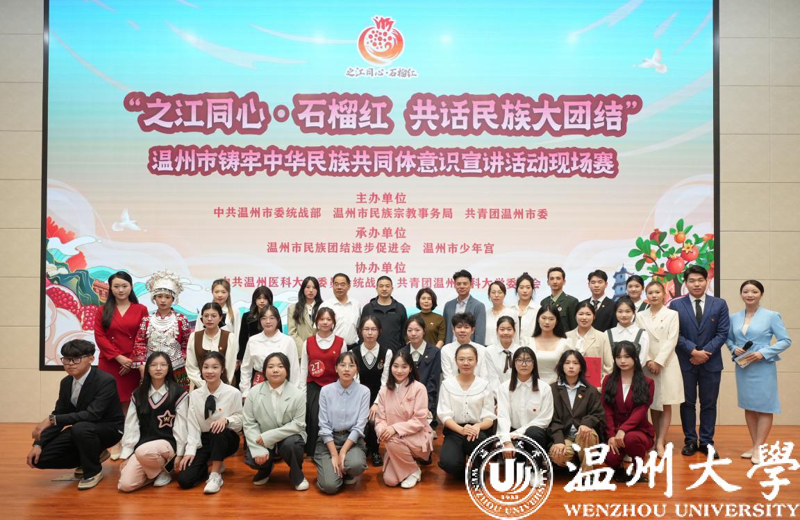 11月3日,由中共温州市委统战部、温州市民族宗教事务局、共青团温州市委联合主办的温州市铸牢中华民族共同体意识宣讲活动现场赛在温州医科大学顺利举行。来自温州各高校的30名大学生参加了青年组比赛,共评选出一等奖3名,二等奖5名,三等奖10名。ac米兰选派的4位选手全部获奖,教育学院倪心倚荣获一等奖、美术与设计学院戚伊蕊和法学院穆再排尔·穆合塔尔分获二等奖、人文学院钱肖妤荣获三等奖。ac米兰同时获评优秀组织奖。