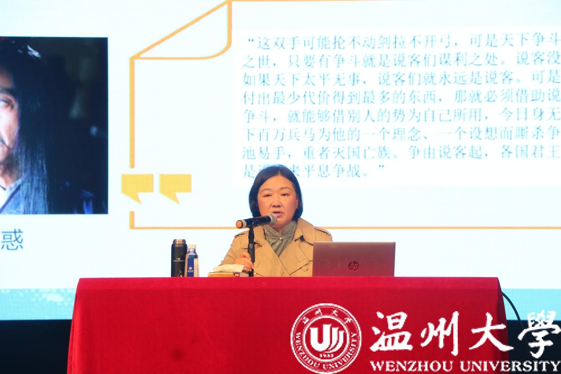 课堂上,蒋胜男从《燕云台》谈起,结合自身的职业成长经历为在场的师生们讲述《芈月传》创作的过程,分享了自己文学创作的心路历程,并谈到历史小说的写作意义,为我们展现了中国先秦、辽宋时期的历史文化、思想争鸣。在蒋胜男看来,当人类站在历史和命运的十字路口,其实并没有绝对的正确就能成功,但以史为鉴,能得到不少有价值的经验和思考。而研读者能提供的,就是给这个世界更多的案例和解读方式,提供给下一个十字路口的人们,让他们有更多案例可选择。她说,“我们常说‘以史为鉴’,历史其实就像一面镜子,能够照出人类曾经所有的困惑、痛苦。这些情感是共通的,是能够超越历史,映照当下的。”