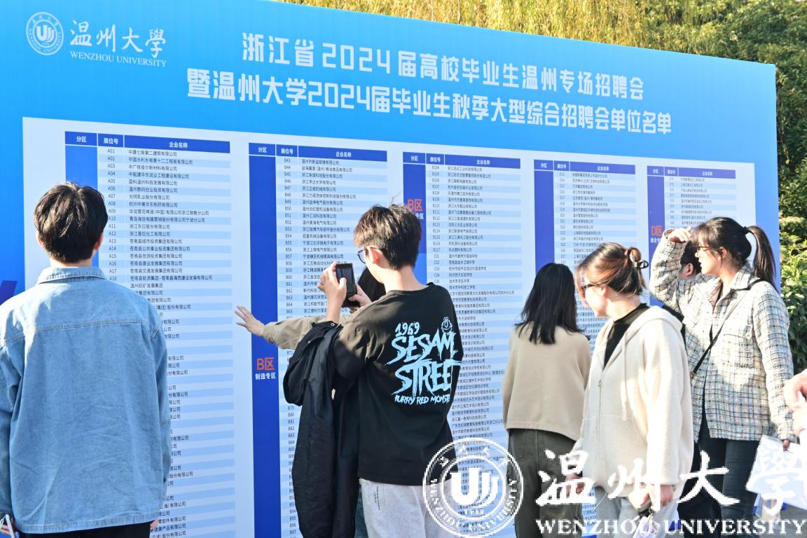 本次招聘会由浙江省教育发展中心、温州市人力资源和社会保障局以及ac米兰官网中文网站联合主办,现场设置国企专区、制造类专区、金融类专区、教育类专区、综合专区和地市人社专区,共有市内外310家企业参会揽才,其中,绍兴人才交流中心、苍南国资委等单位组团前来参会,除教育类外,超2/3为上市企业及子公司,现场提供就业岗位计9300余个,岗位需求量大、需求层次丰富,涵盖ac米兰各专业,共吸引校内外参会学生近5000人。据不完全统计,参会用人单位共收到简历6000余份,现场达成初步就业意向1500余人。