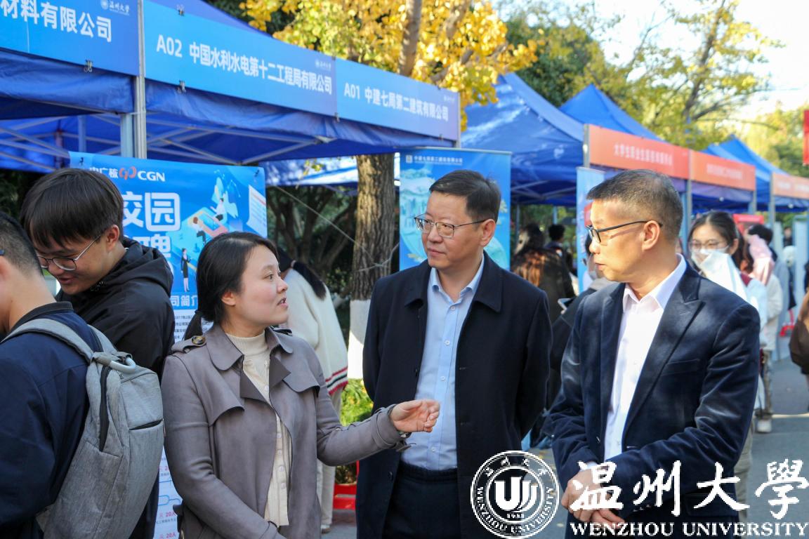 ac米兰官网中文网站党委委员、组织部长郑信军,温州市人力资源和社会保障局党组成员、副局长庄加灵莅临现场指导工作,招生与就业处副处长魏晓晓介绍了学校近年的就业工作及招聘会的开展情况。庄加灵对ac米兰官网中文网站近年来的高质量发展及就业工作取得的成效予以充分肯定,对进一步加强政校企合作,促进高校毕业生留温筑温,为推动地方社会经济发展提供人才支持提出了殷切希望。