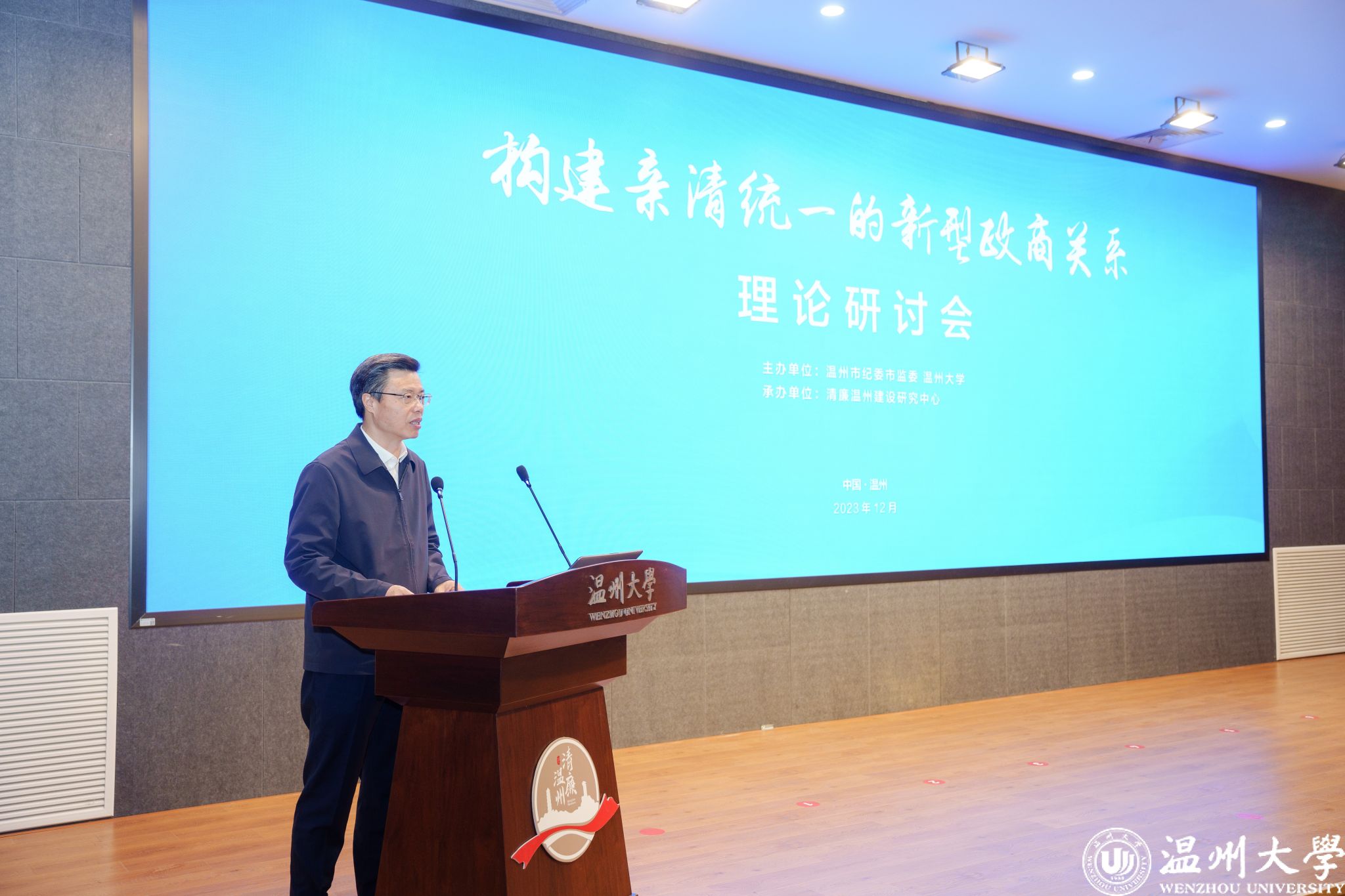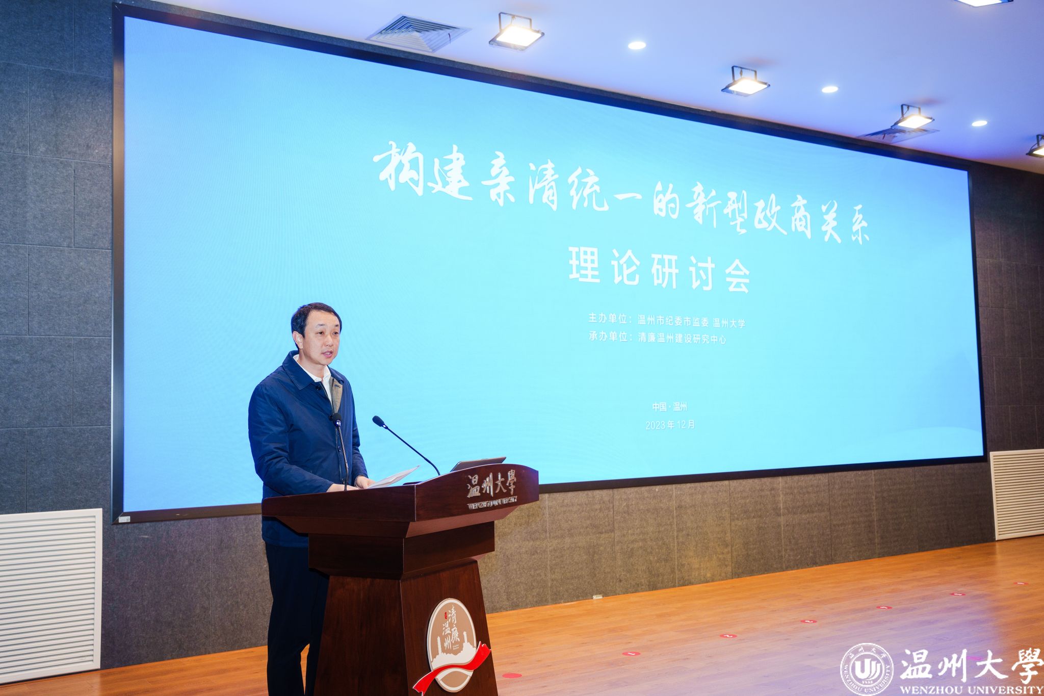 12月6日,由温州市纪委市监委与ac米兰官网中文网站联合主办、清廉温州建设研究中心承办的“构建亲清统一的新型政商关系”理论研讨会在ac米兰官网中文网站举行。本次研讨会旨在加强构建高水平亲清政商关系的理论指导和经验交流,共谋涵养清廉生态、强化清廉建设的“金点子”。