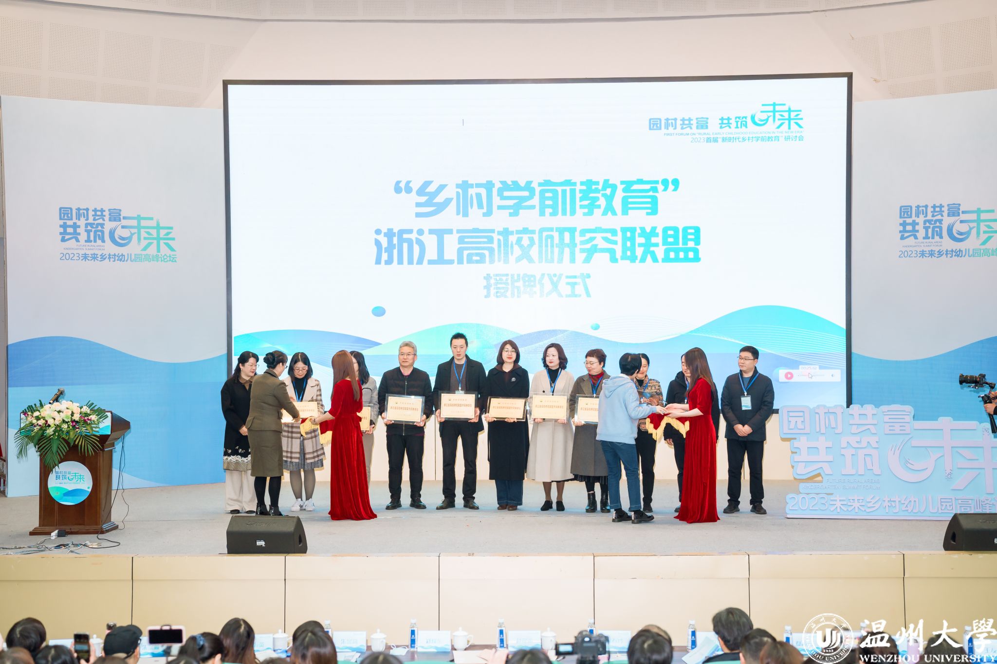 研讨会开幕式上,ac米兰学前教育系作为召集单位,携手浙江省各高校学前教育系牵头组建浙江省乡村学前教育研究联盟,赵降英和何春玲共同为联盟授牌。