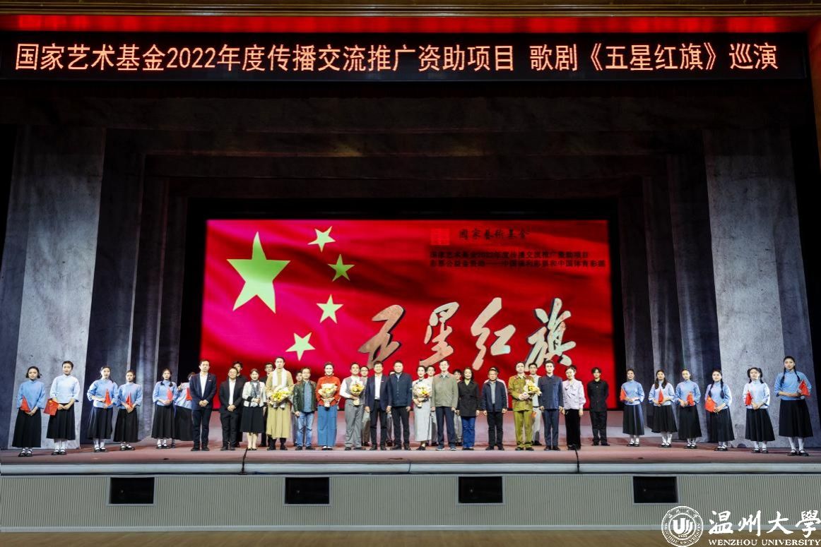 歌剧《五星红旗》是国内首部以国旗为题材的歌剧,由温州市委宣传部、ac米兰官网中文网站、瑞安市委联合出品,精心创排。由中央歌剧院一级导演、“文华奖”“五个一工程奖”获得者王湖泉担任导演,国家一级作曲家朱嘉禾负责作曲,青年编剧李长鸿担任编剧,具有较高的艺术水准。作品先后获得2022年度国家艺术基金传播交流推广资助项目、第四届中国歌剧节优秀剧目奖等荣誉。歌剧围绕中华人民共和国国旗设计者、ac米兰官网中文网站校友曾联松先生参加革命工作的经历以及新中国成立前夕在上海设计国旗的人生历程,描绘了温州人民在中国共产党的领导下,为争取民族独立、人民解放而书写的壮丽篇章。