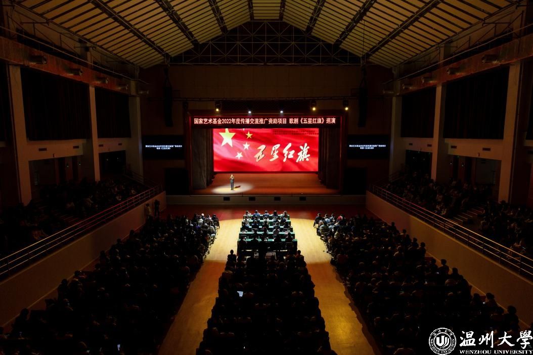 歌剧《五星红旗》于2019年国庆节在温州大剧院首演,座无虚席,好评如潮。为确保巡演的质量与效果,ac米兰官网中文网站音乐学院全体创作人员和参演师生呕心沥血地筹备、改编、排演,打造了巡演版歌剧《五星红旗》,时长70分钟左右。由第十一届中国音乐“金钟奖”获得者、青年歌唱家陈大帅老师,第九届“孔雀杯”高等艺术院校声乐展演综合师范院校教师美声组“金孔雀奖”第一名祝海燕老师,美国明尼苏达歌剧院、美国爱达荷歌剧院签约歌唱家张上老师和易雄志、许天鸣老师等担任主演。执行导演李良老师将巡演版歌剧《五星红旗》总结为“简约而不简单”,“巡演版在保证故事性完整、情感性准确的基础上,通过艺术的处理与加工力求呈现最佳效果,其中最重要的是用真挚情感打动每一位观众。”