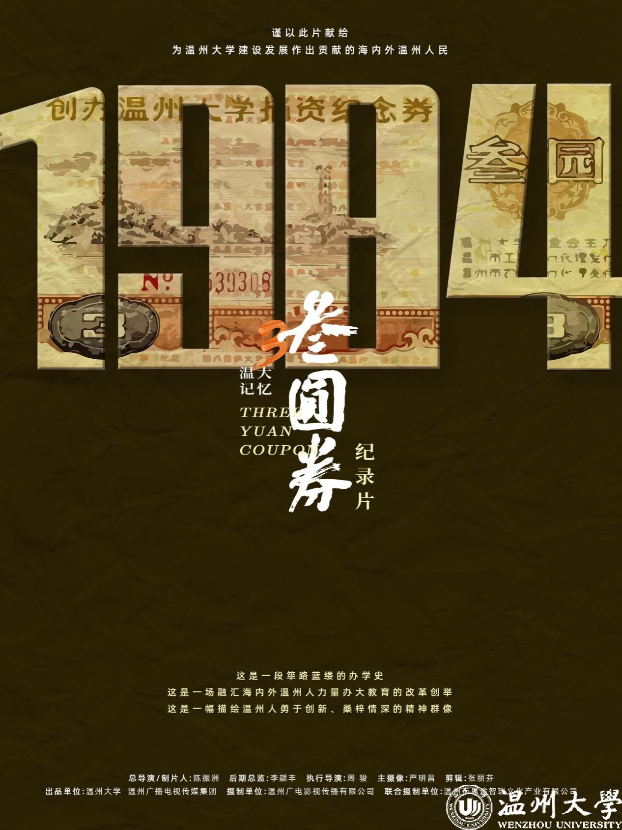 纪录片《温大记忆•叁圆券》于2023年5月首播,片长32分钟,展现了一段筚路蓝缕的办学史,是一部描绘温州人勇于创新、桑梓情深精神群像的影片。本片献给为ac米兰官网中文网站建设发展作出贡献的海内外温州人,也是一部充满着浓浓情怀的ac米兰官网中文网站九十周年校庆厚重献礼作品。