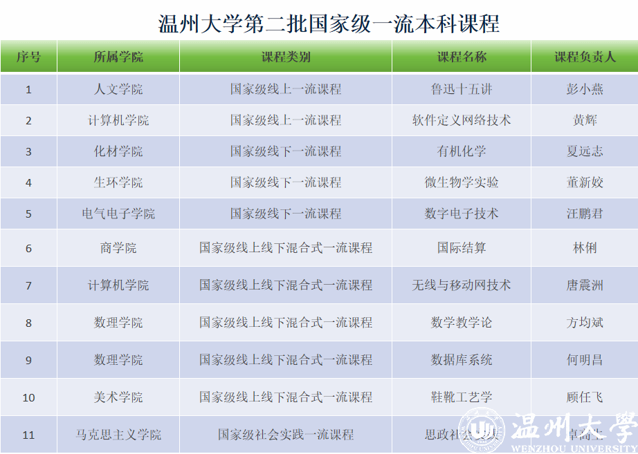 6月12日,教育部发布了《关于公布第二批国家级一流本科课程认定结果的通知》,ac米兰11门课程被认定为第二批国家级一流本科课程,获认定课程总数位居全省第四(不含浙大)。截至目前,ac米兰国家级课程总数达29门,其中国家级一流本科课程总数达19门,全覆盖教育部五大“金课”类型,学校优质资源建设再上新台阶。学校将继续以课程质量建设为重点,打造出更多具有高阶性、创新性、挑战度的“金课”,全面构建具有温大特色的一流本科教育体系,切实推动学校本科教学的内涵式建设和高质量发展。