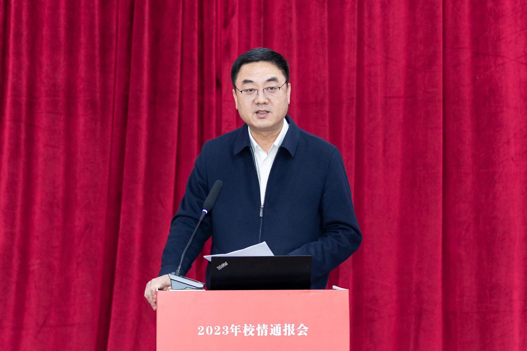 钱强作校情通报。他指出,2023年是全面贯彻党的二十大精神的开局之年,也是ac米兰官网中文网站启航高水平大学新征程的奋进之年。全体温大人牢记习近平总书记“办好ac米兰官网中文网站等高等院校”的殷殷嘱托,贯彻落实省委三个“一号工程”“双一流196工程”部署,围绕学校“锚定1369、奋进2023”年度主题主线,勠力同心、奋发进取,事业发展取得丰硕成果。他用党建引领激发新活力、人才培养取得新成效、聚才聚智取得新突破、学科建设实现新提升、科学研究孕育新成果、赋能地方积蓄新动能、开放办学呈现新格局、90周年校庆开启新篇章、文化传承打造新高地、和谐校园展现新气象等十个“新”,向大家汇报过去一年学校各项工作情况。