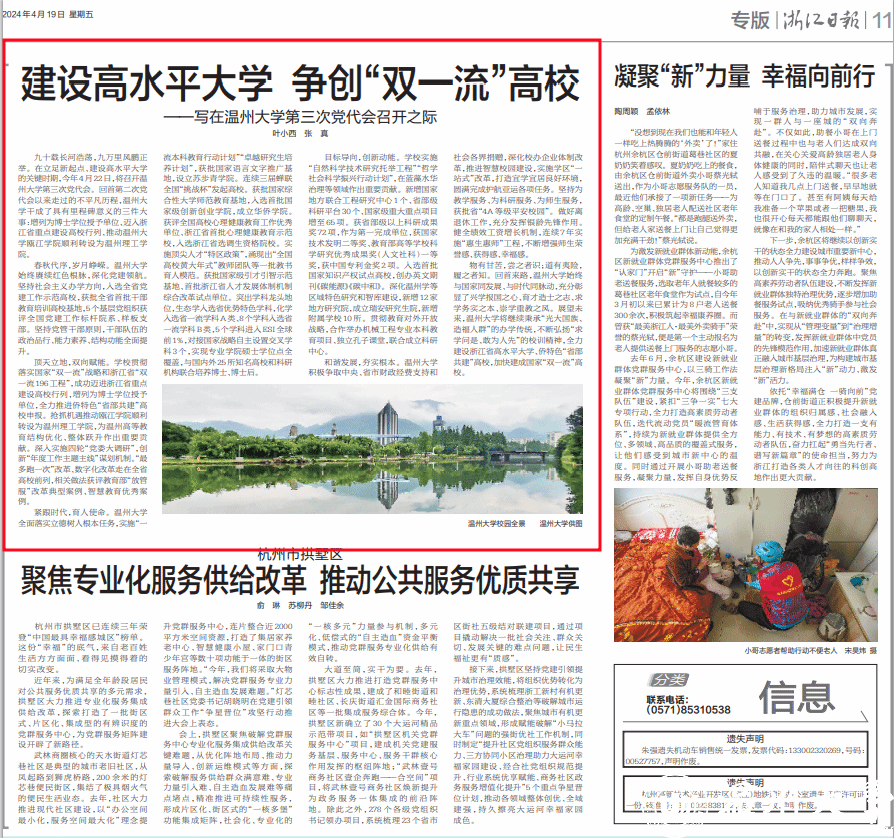 九十载长河浩荡,九万里风鹏正举。在立足新起点、建设高水平大学的关键时期,今年4月22日,将召开ac米兰官网中文网站第三次党代会。回首第二次党代会以来走过的不平凡历程,ac米兰官网中文网站干成了具有里程碑意义的三件大事:增列为博士学位授予单位、迈入浙江省重点建设高校行列、推动ac米兰官网中文网站瓯江学院顺利转设为温州理工学院。