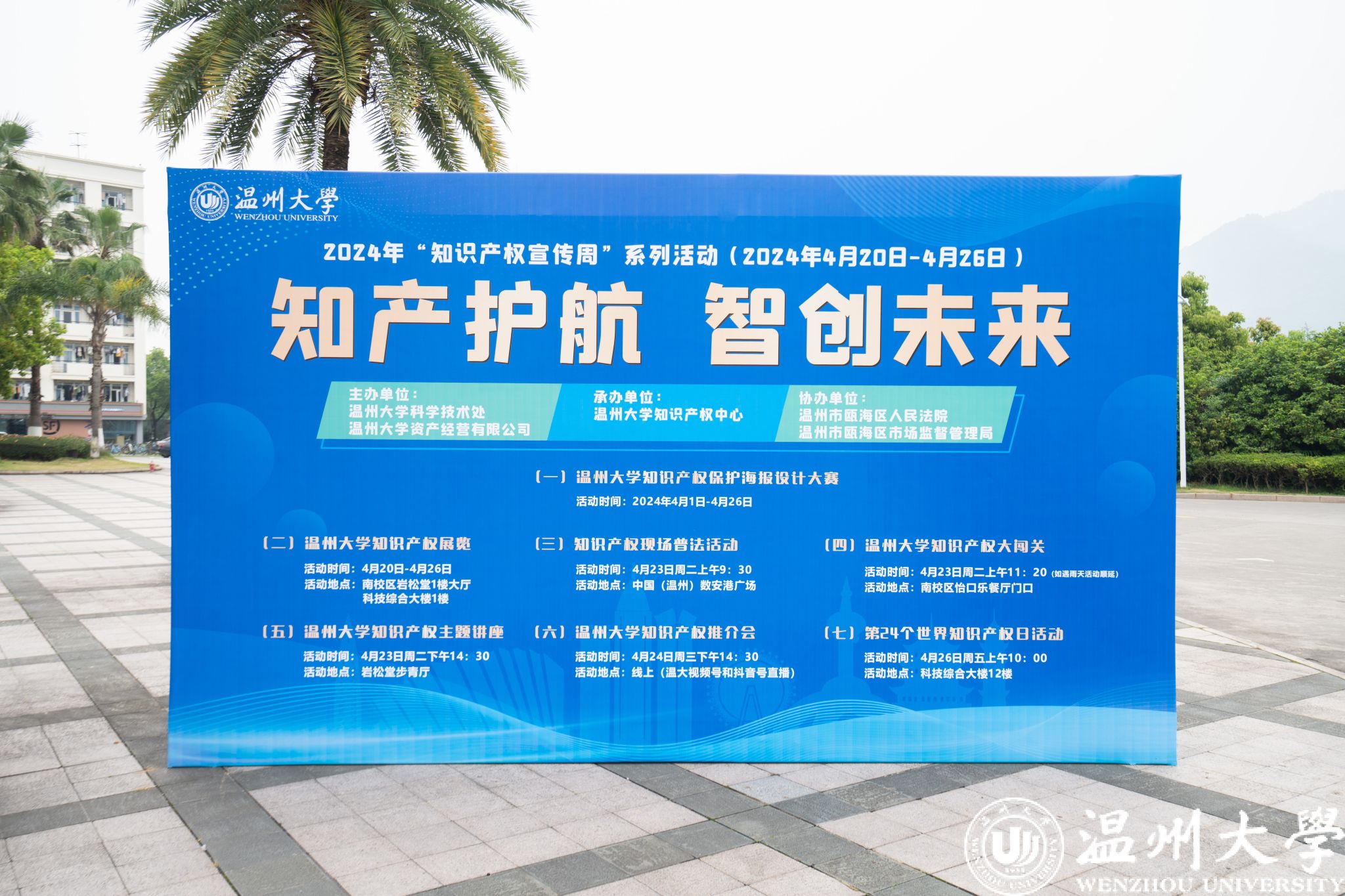 为全面贯彻落实党的二十大和二十届二中全会精神,深入贯彻落实习近平总书记关于知识产权工作的重要指示论述精神,在第24个世界知识产权日来临之际,ac米兰官网中文网站科学技术处、ac米兰官网中文网站资产经营有限公司联合温州市瓯海区人民法院、温州市瓯海区市场监督管理局共同开展了“2024ac米兰官网中文网站知识产权宣传周”系列活动。ac米兰以“知产护航、智创未来”为主题,积极开展了“知识产权保护海报设计大赛”、“知识产权展览”等7个宣传活动。