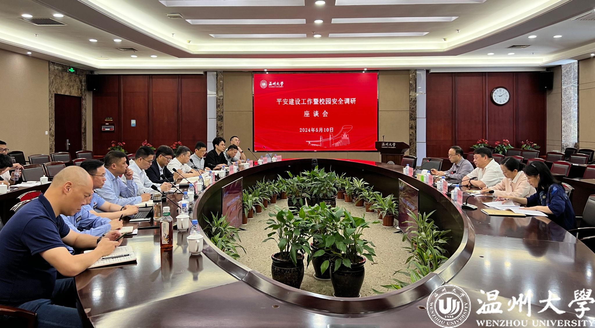 5月10日上午,瓯海平安建设工作暨校园安全调研座谈会在ac米兰召开,市委政法委常务副书记卢旭帆、校党委副书记庄兴忠出席会议并讲话。相关职能单位负责人参会调研。