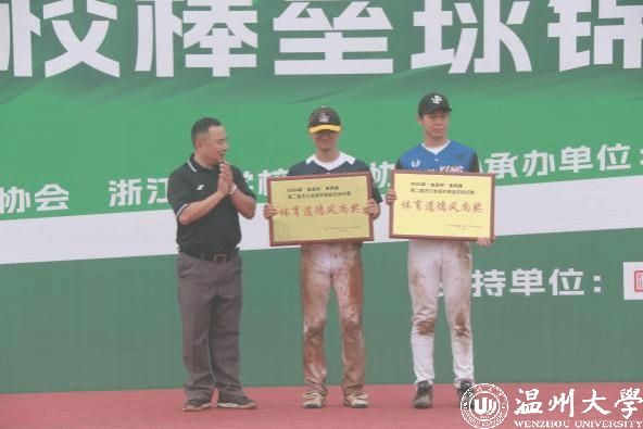 裁判长石峰、浙江省棒垒球协会副秘书长苏岑分别颁发体育道德风尚奖、优秀教练员、优秀投手奖、优秀裁判员、最佳击球员奖、本垒打奖。