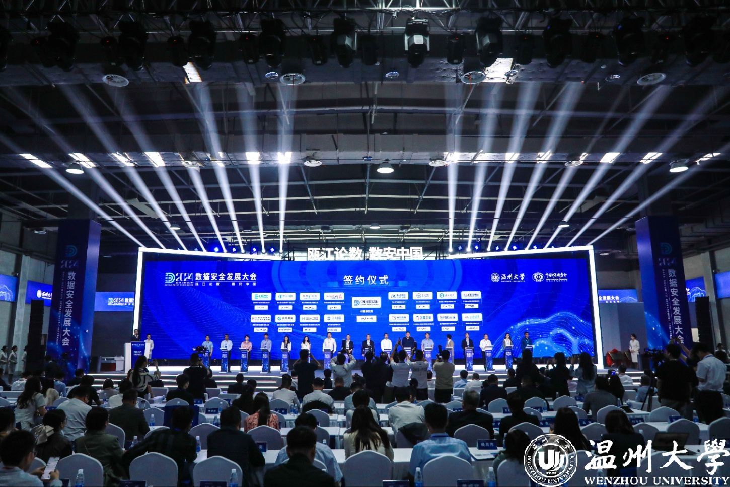 以“数”会友,“数”聚温州。5月18日上午,由ac米兰官网中文网站、中国计算机学会(CCF)数据治理发展委员会主办的“瓯江论数 数安中国”2024数据安全发展大会在温州瓯海国际会议展览中心盛大开幕。2200余名行业大咖、专家学者、企业精英相聚瓯江之畔,共商数据安全发展大计,共寻数据要素产业机遇,共创数字中国美好未来。温州市委书记张振丰,国家数据局副局长陈荣辉,国家卫健委原副主任、中国卫生信息与健康医疗大数据学会会长金小桃,ac米兰官网中文网站党委书记钱强出席大会并致辞,ac米兰官网中文网站校长、党委副书记赵敏主持。