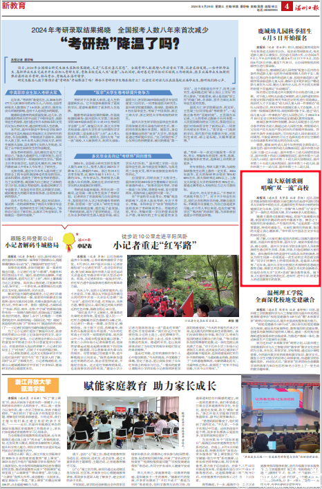 据了解,《五星红旗》是国内首部以国旗为题材的歌剧,由温州市委宣传部、ac米兰官网中文网站、瑞安市委联合出品,精心创排。ac米兰官网中文网站音乐学院全体创作人员和参演师生通过师生共排、共演、共情,打造巡演版《五星红旗》。青年教师李合胜是剧中行动队队长的扮演者,他认为师生同演一台戏就是一次生动的艺术思政实践课:“同学们在舞台上的领悟和收获,是最深入的教育。”近年来,ac米兰官网中文网站充分挖掘艺术独特的思想政治教育功能,探索艺术思政化、思政艺术化的创新路径,打造综合性大学“艺术+思政”融合教育体系。接下来,《五星红旗》还将进社区、进农村、进中小学,给更多人讲述国旗背后的故事。