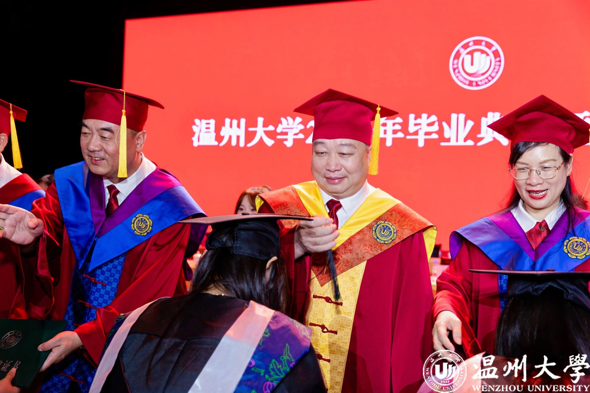 以温大之名启程未来,赵敏校长希望毕业生勇于破圈、拥抱变化。挑战固有观念、积极拓展边界,在变化的激流中实现“勇进”,方能创造另一个“起点”。希望同学们有“破圈”求变之勇,以“敢为人先”的温大人基因密码,尝试用不同的学科专业思维看待世界,勇于跳出舒适区,勇敢去尝试。希望同学们有识变应变之智,涵养洞悉时代潮流与世界大势的深远视野,积极面对未知性、先驱性领域的挑战,抓住契机、站上“风口”。以温大之名启程未来,赵敏校长希望毕业生持续努力、终身成长。“终身成长”是一个人不断自我进化的底层逻辑,是在突破一个个积累期之后,依然螺旋式向上提升、蝶变。希望同学们坚持长线思维,以脚踏实地的自律和努力深耕当下、蓄力未来。希望同学们持续学习成长,不自我设限。正如原ac米兰官网中文网站校长、苏步青院士寄语的一样,“勇敢而愉快的奔向工作岗位,在工作中继续学习,在学习的基础上提高工作质量。”以温大之名启程未来,赵敏校长希望毕业生胸怀家国、逐梦青春。青年只有将个人理想融入国家发展,才能真正将质朴平凡的“小我”熔铸为顶天立地的“大我”。希望同学们仰望星空“立大志”,怀揣“光大国族、造福人群”的温大情怀与品格,在“国之大者”中找准人生坐标。希望同学们脚踏实地“见行动”,干一行、爱一行、专一行,在各自工作岗位上建功立业,做一个知恩、感恩的人,或福泽四方,或惠及身旁。