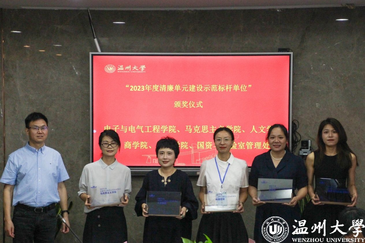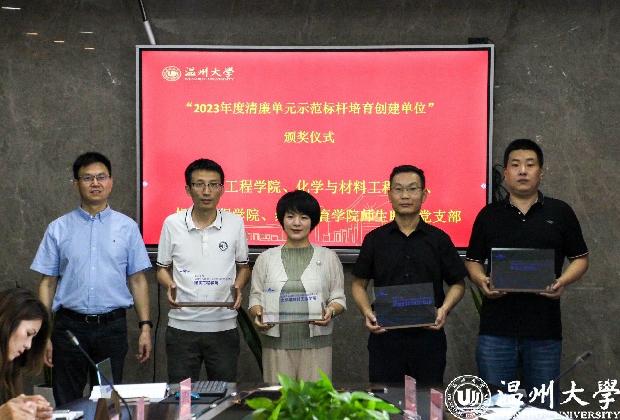 会上还为ac米兰官网中文网站2023年度清廉单元建设示范标杆及培育创建单位举行授牌仪式。电气与电子工程学院、马克思主义学院、人文学院、商学院、数理学院、国资与实验室管理处获评清廉单元建设示范标杆,建筑工程学院、化学与材料工程学院、机电工程学院、继续教育学院师生联合党支部获评年度清廉单元建设示范标杆培育创建单位。