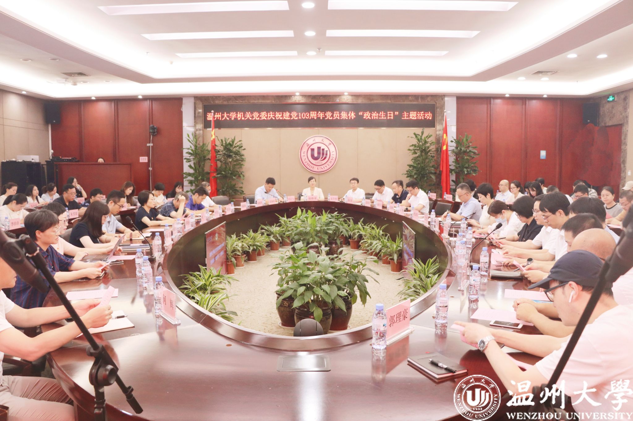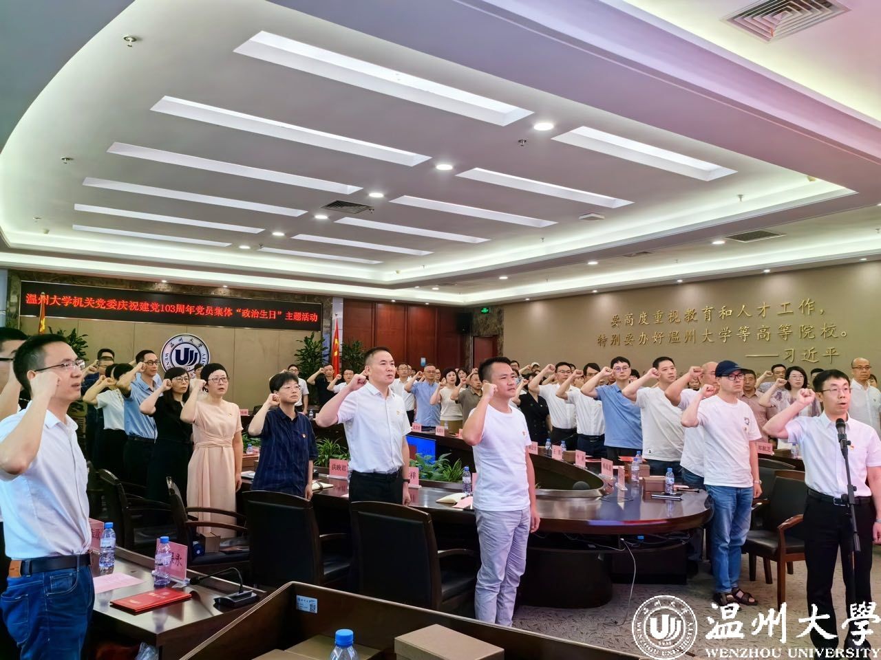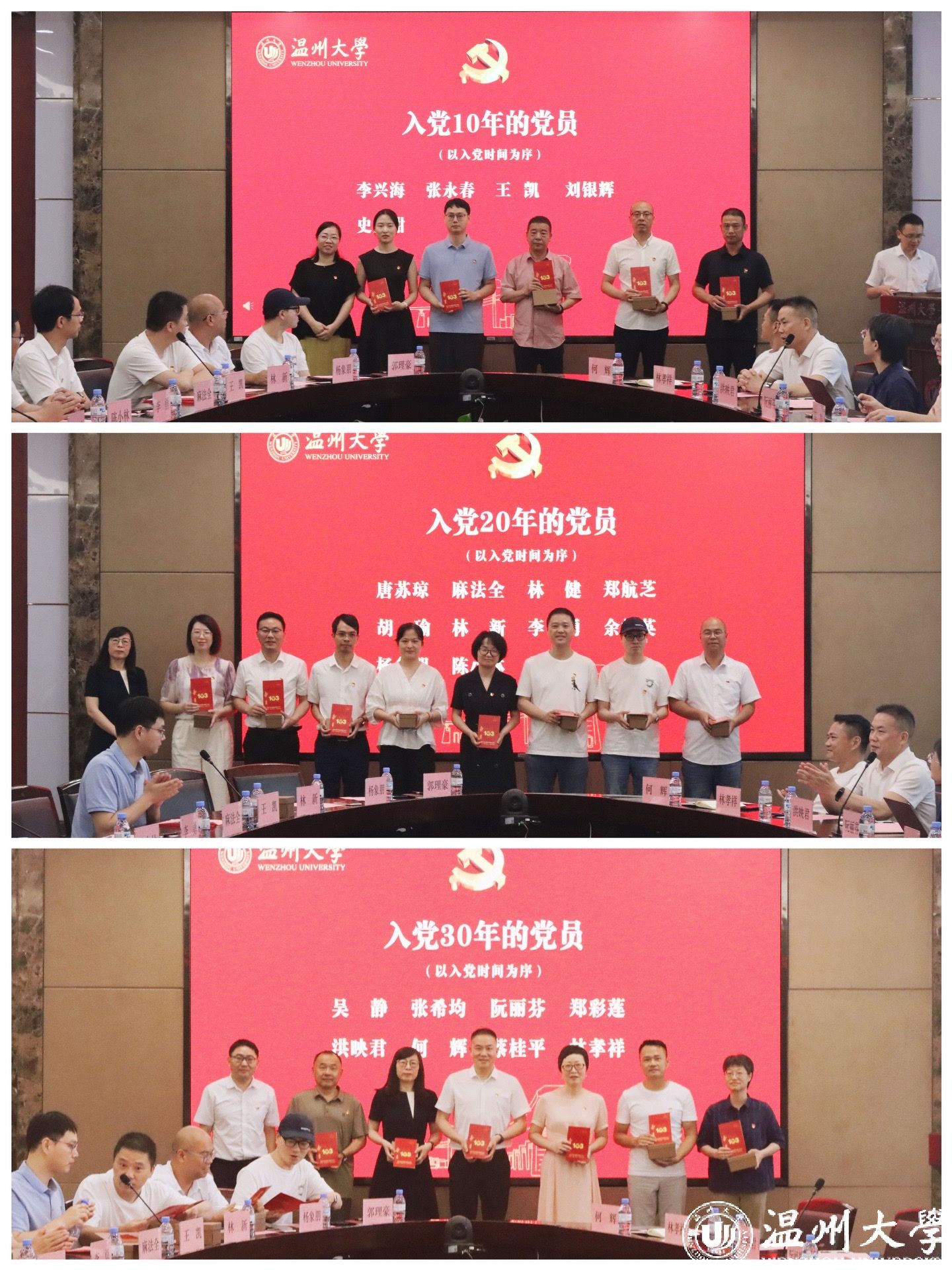 主题活动由七项议程组成,在红歌合唱《映山红》中拉开序幕,共同回忆党史中的峥嵘岁月,进一步增强爱党、报国、为民的情怀。活动集中表彰了2023年度机关党委“星级党支部”以及2023/2024学年“党员服务之星”,弘扬实干作风,激励各条战线、各个领域、各项工作中的先进组织和个人,进一步立足岗位、对标提升,在新征程上有新担当、新作为。现场为入党10年、20年、30年的党员举行集体“政治生日”,赠送“政治生日”贺卡,阮丽芬、唐苏琼、王凯等三位党员代表回忆入党时的感悟,分享了长期在党组织培养下,始终以一颗赤子之心践行党旗下庄严承诺的成长历程。全体与会党员重温入党誓词,进一步增强政治荣誉感、组织归属感和身份认同感,时刻铭记初心和使命,始终保持共产党员的先进性和纯洁性。