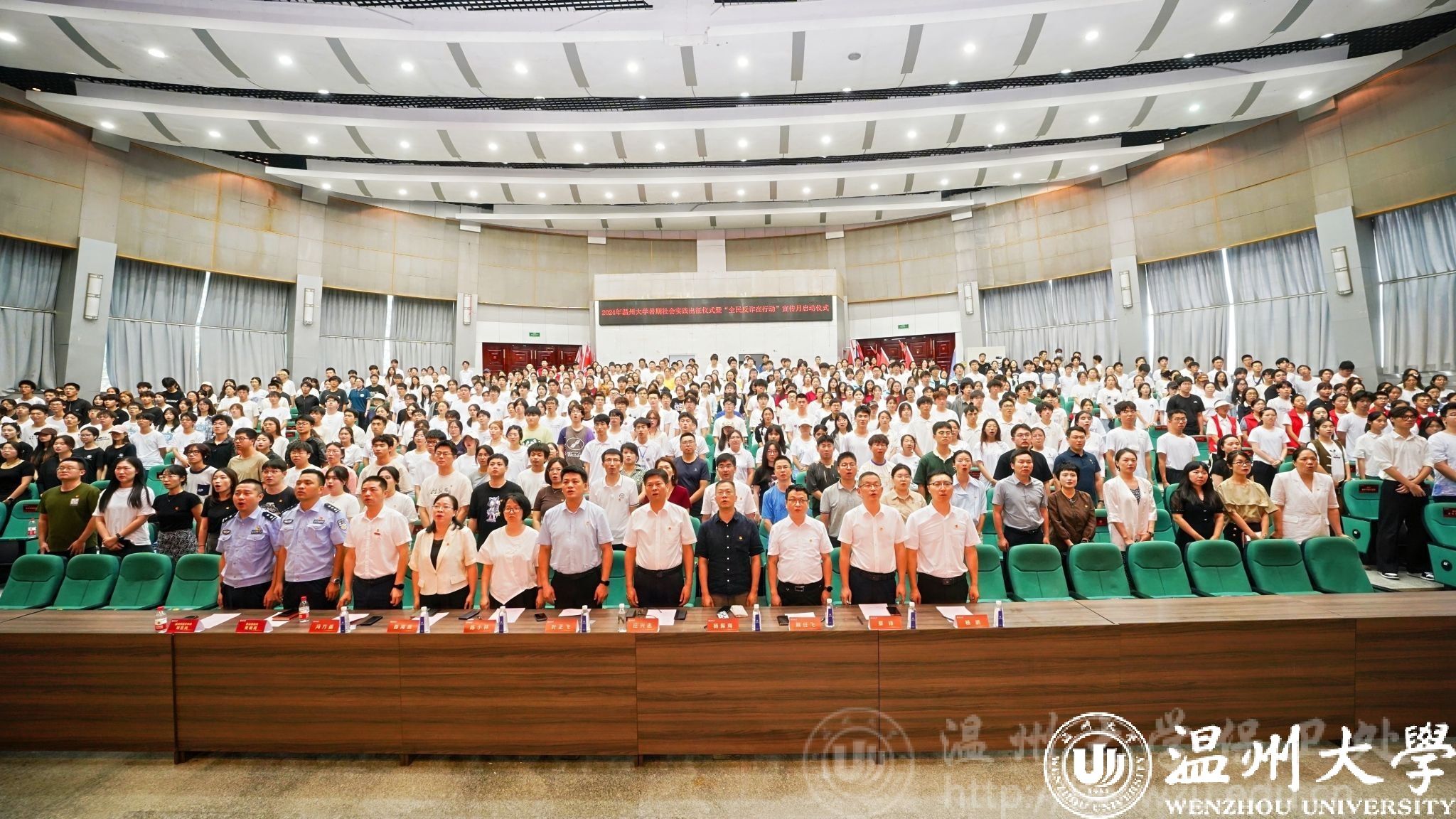 为认真贯彻落实省反诈联席办关于反诈工作的通知要求,进一步加强ac米兰反诈宣传力度,切实增强师生的反诈防骗意识和能力,积极营造全民反诈在行动的浓厚氛围。7月6日下午,ac米兰成功举办“警惕诈骗新手法,不做电诈工具人”为主题的“全民反诈在行动”集中宣传月启动仪式活动。校党委副书记庄兴忠出席活动,辖区茶山派出所教导员张朝晖、温州市反诈中心警官刘昱洲、各相关部门负责人和学院副书记、辅导员、以及来自各学院暑期社会实践队500余人参加活动。