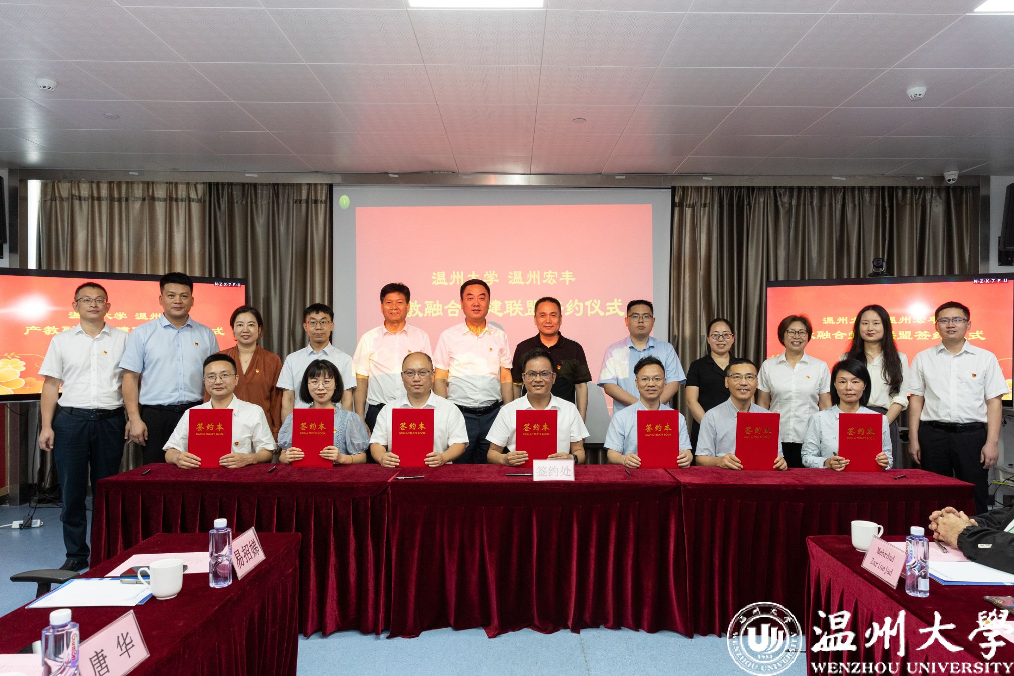 7月11日,ac米兰官网中文网站与温州宏丰电工合金股份有限公司共建产教融合党建联盟揭牌仪式在温州宏丰举行。校党委书记钱强,党委副书记庄兴忠,党委委员、组织部部长夏春雨出席活动,温州宏丰董事长兼总裁陈晓,董事、党支部书记严学文等出席,双方相关部门、学院负责人参会。