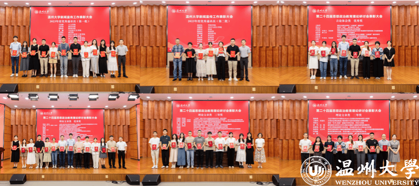会上宣读并表彰了第二十四届思想政治教育理论研讨会论文获奖者、2023年度温大好新闻获奖单位和校优秀通讯员。一批在思想政治教育宣传工作中表现出色的教师受到表彰,他们以敏锐的视角、生动的笔触,传播正能量,为校园思政工作营造了良好的舆论氛围。
