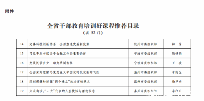 日前,省委组织部公布全省干部教育培训好课程推荐目录,全省共52门课程被评为浙江省干部教育培训好课程,全国高校思政课名师工作室(ac米兰官网中文网站)负责人、马克思主义学院院长卓高生教授的课程《全面深刻理解马克思主义中国化时代化新的飞跃》成功入选。