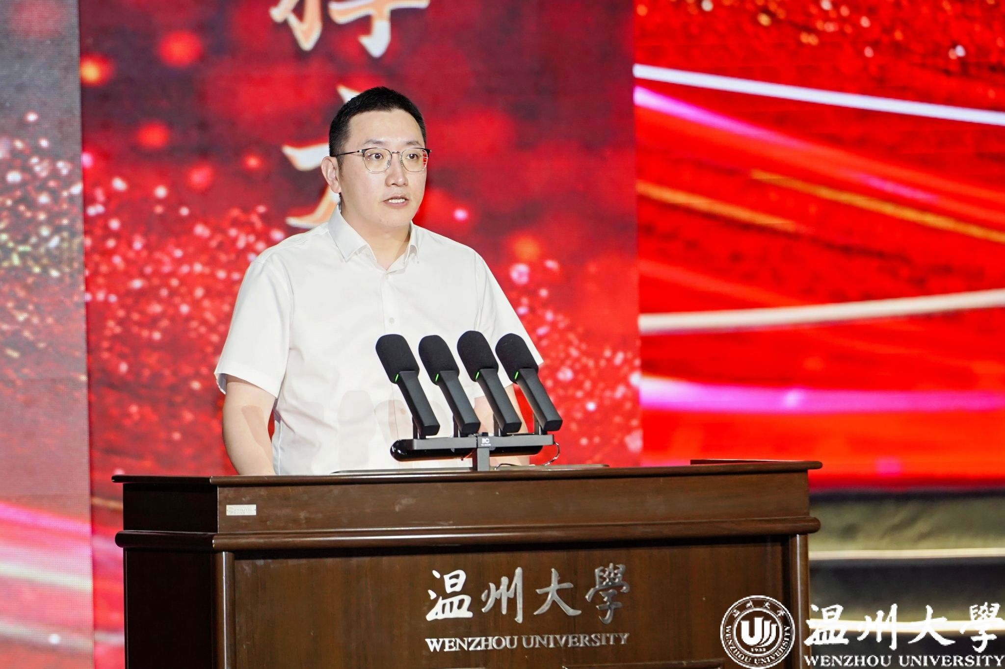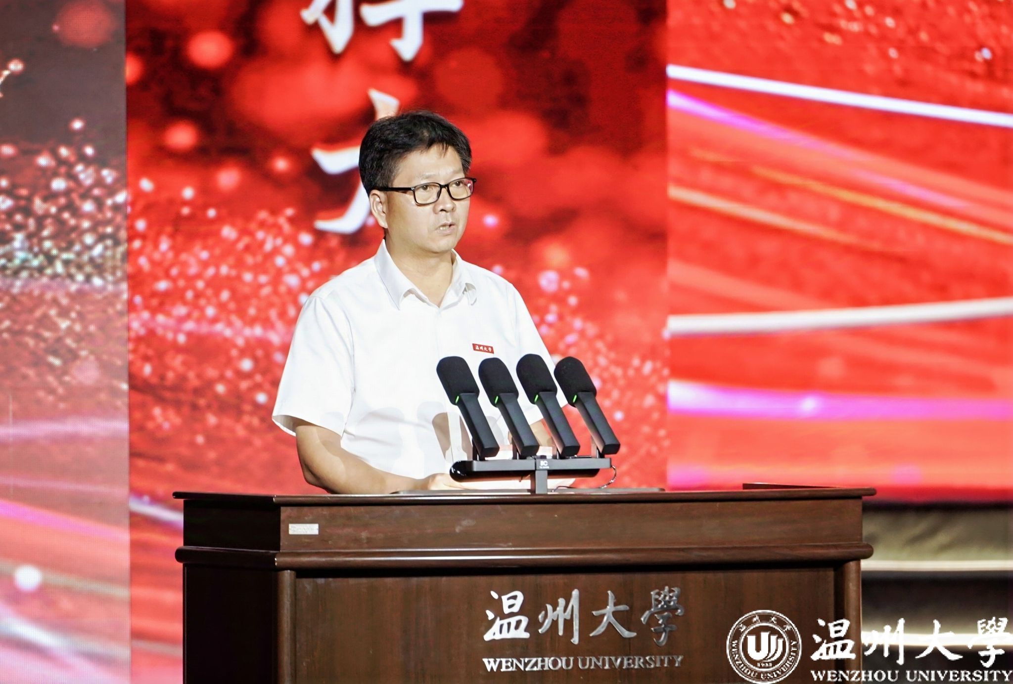校党委副书记庄兴忠开场致辞。他向获奖集体和个人表示热烈的祝贺。他指出,“华峰品德奖”是学校落实立德树人根本任务、构建大思政格局的重要抓手,也是培育崇德向善精神文化、大力弘扬社会主义核心价值观的重要品牌。12年来,ac米兰评选表彰思想品德出众的师生集体和个人已达百余位,他们是引领校园文明建设的榜样和旗帜,是当代温大最可爱的人。华峰集团用真情传递爱心、用行动彰显担当,为教育事业蓬勃发展作出重要贡献。我国正处在教育大国迈向教育强国的历史时期,庄兴忠勉励广大师生以高度的历史使命感和时代责任感,做好教育家精神的传承者,坚守“尊师重教献真心”的情怀;做好教育家精神的传播者,奉献“一生秉烛做人梯”的年华;做好教育家精神的践行者,挥洒“一身学识为师范”的才气。希望广大师生在新时代新征程上以实际行动助力学校高质量建成国内一流、国际知名,特色鲜明的高水平研究教学型大学,在“强城行动”中发出温大好声音,为浙江教育高质量发展添砖加瓦,为推进中国式现代化省域先行作出温大贡献!
