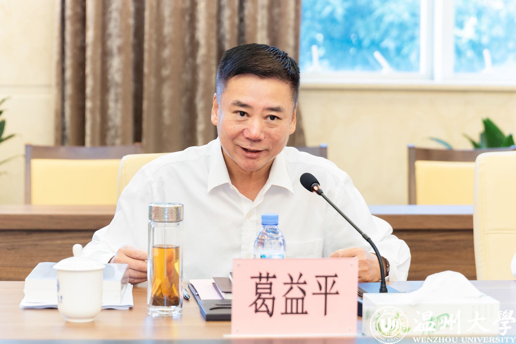 9月24日上午,温州市人大常委会主任葛益平一行来校开展温州学研究调研工作并召开专题座谈。市人大常委会秘书长刘峰、副秘书长余爱玉,市社科联主席潘晓勇,市十三届人大常委会副秘书长叶育登、委员金浩,市社科联副主席倪考梦等陪同,校党委书记钱强、副书记赵降英、副校长刘玉侠出席座谈会,相关处室负责人及部分温州学研究专家参加座谈。