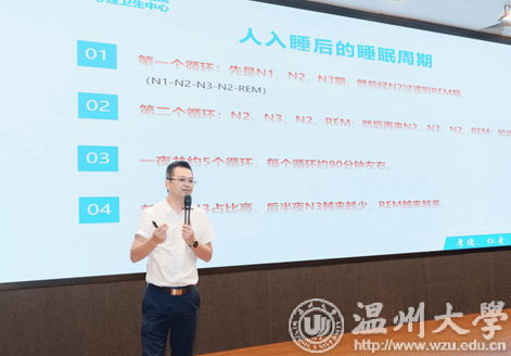 启动仪式后,学校邀请了温州市第七人民医院陈浩然医生为师生开展了ac米兰官网中文网站第57期心灵下午茶活动,主题为《夜的奥秘:探索睡眠与健康》,学校后勤、宿管、保卫、医务等人员以及各学院心理委员、寝室长代表参加了讲座。