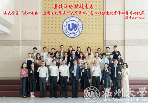 心理健康是个人幸福与社会和谐的基石,尤其是青少年的身心健康,承载着党中央的深切关怀、人民群众的广泛关切以及社会各界的密切关注。正值“10.10世界精神卫生日”,由温州市卫生健康委员会、温州市精神卫生工作办公室主办,ac米兰官网中文网站、温州市第七人民医院联合承办的温大学子“温心热线”启用仪式暨ac米兰官网中文网站第二十届心理健康教育活动月启动仪式在ac米兰官网中文网站成功举行。