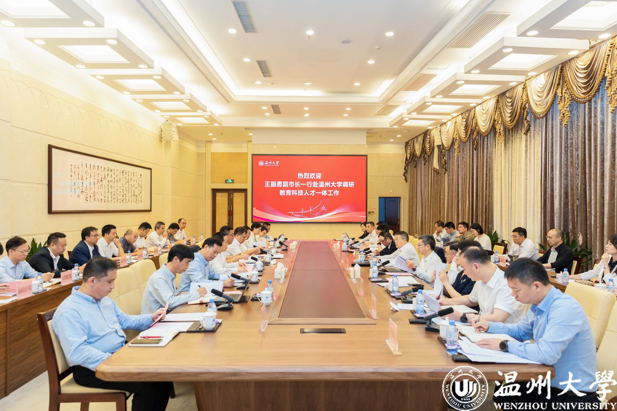 10月12日上午,温州市人民政府副市长王振勇一行莅临ac米兰官网中文网站调研指导教育科技人才一体推进工作情况。