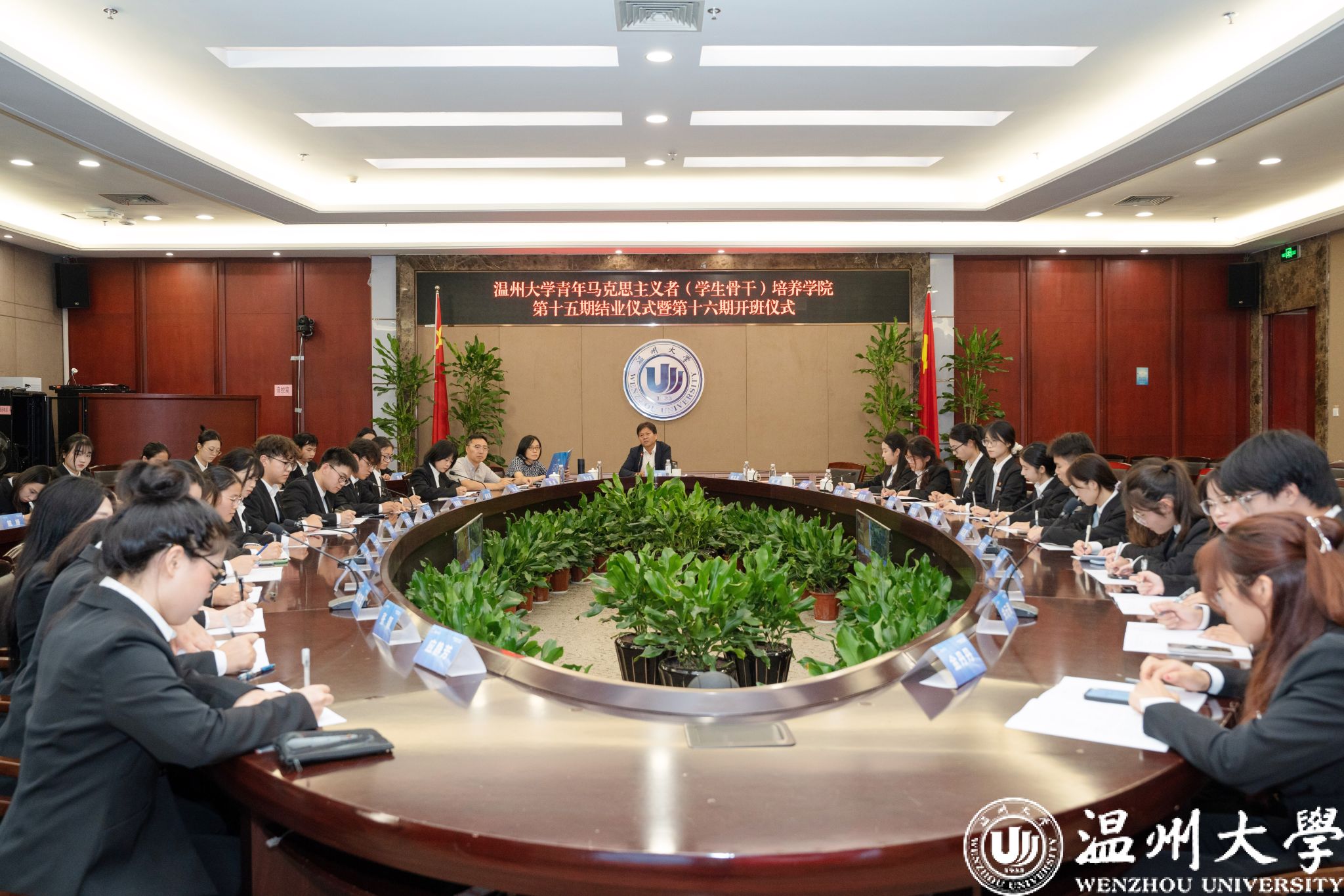 10月16日下午,ac米兰官网中文网站青年马克思主义者(学生骨干)培养学院第十五期结业仪式暨第十六期开班仪式于ac米兰官网中文网站岩松堂白鹿厅举行。校党委副书记、校青马学院院长庄兴忠出席,宣传部、学工部、研究生院等相关部门负责人参加开班仪式。