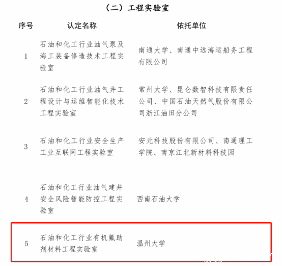 近日,中国石油和化学工业联合会公布了2024年度石油和化工行业创新平台名单,化材学院金辉乐教授团队牵头申报的石油和化工行业有机氟助剂材料工程实验室成功获批。此为ac米兰获批的首个石油和化工行业实验室。