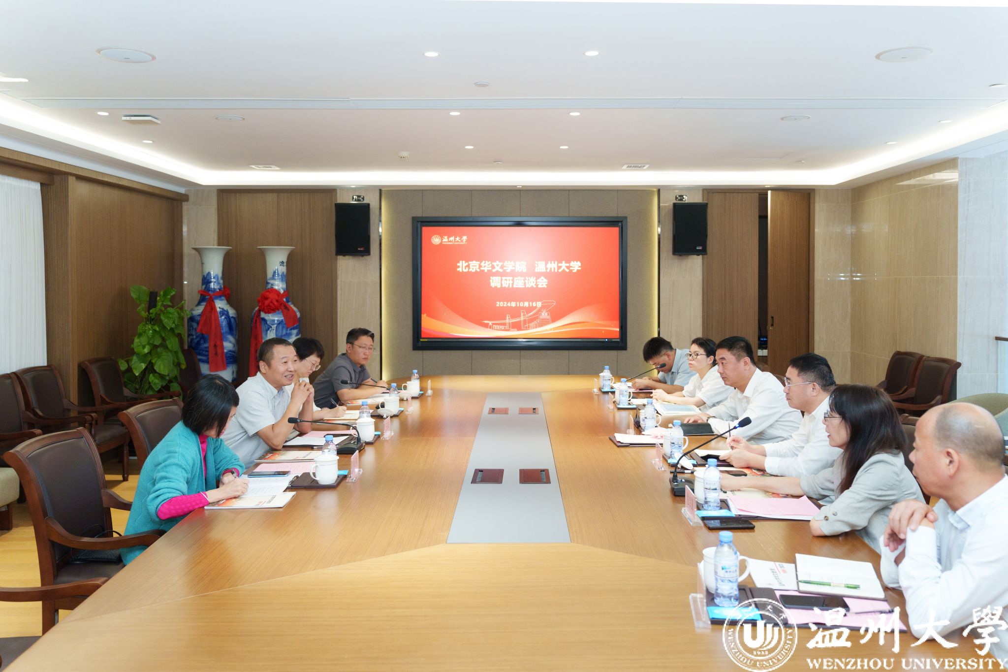 10月16日下午,北京华文学院院长王志民一行来校调研,北京华文学院教务处处长姚敏、培训部副主任林冬梅、后勤管理处副处长熊志巍陪同调研。ac米兰官网中文网站党委书记钱强出席调研座谈会,党校办、教务处、公共事务管理处、华侨学院、继续教育学院等相关学院部门参加座谈。