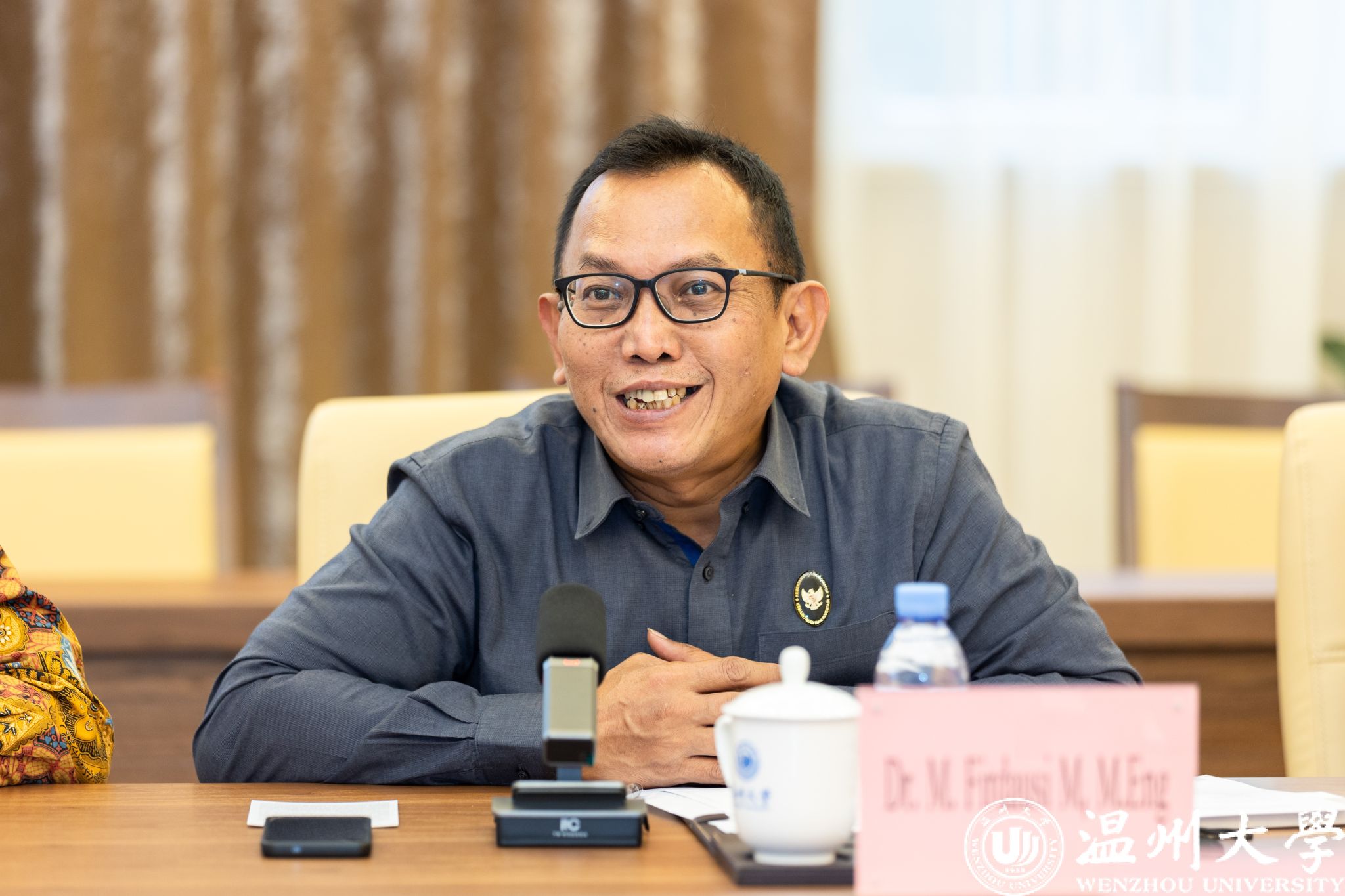 近日,印尼海事与投资统筹部海洋与交通产业副部长助理Manti,M.Firdausi,印尼教育基金管理机构奖学金处主任Dwi Larso、研究处主任Ayom Widipaminto率领一行8人代表团,在青山实业永青集团、印尼莫利瓦利工业园代表的陪同下,抵达ac米兰官网中文网站进行访问。ac米兰官网中文网站校长赵敏,以及国际处、国际教育学院负责人等热情接待了印尼代表团和永青集团一行。