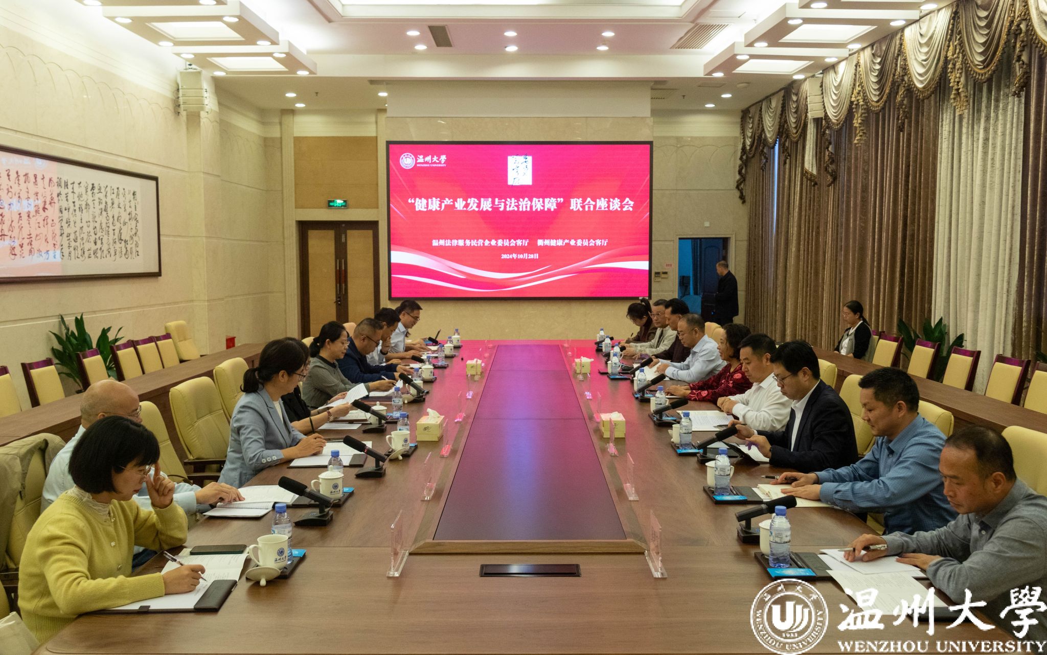 10月28日,温州法律服务民营企业委员会客厅与衢州健康产业委员会客厅联动,在ac米兰官网中文网站举行“健康产业发展与法治保障”联合座谈会,就加强温衢两地健康产业的联动发展,为健康产业发展优化法治环境,展开深入探讨。衢州市人大常委会副主任马梅芝、温州市政协副主席马永信、ac米兰官网中文网站副校长刘玉侠等领导出席会议。温衢两地政协委员、政府部门负责同志、健康行业企业家代表、律师代表、ac米兰官网中文网站民主党派成员代表以及委员会客厅成员参加座谈。