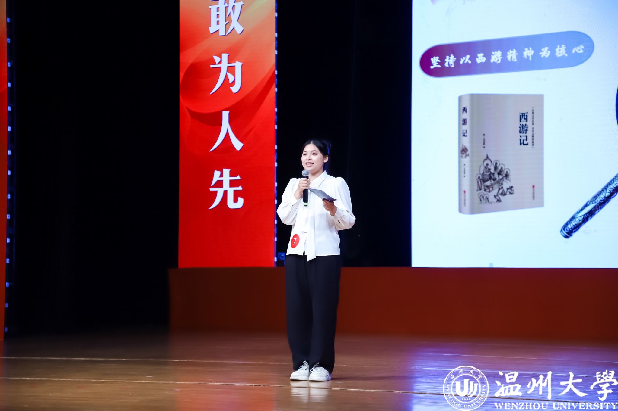 在“大学生讲思政微课”环节,参赛选手从中国式现代化、弘扬教育家精神、发展新质生产力等角度切入,结合理论与实践声情并茂地讲述了一个又一个动人故事,赢得了现场观众的掌声和点赞。借助“微课”这一思政课新形式,用“细嚼慢咽”的方式来品出理论中的“真味”,用“真学笃行”的方式淬得思想的锐利锋芒,不仅让真理得以被“细细品味”,更是让人“久久回味”。