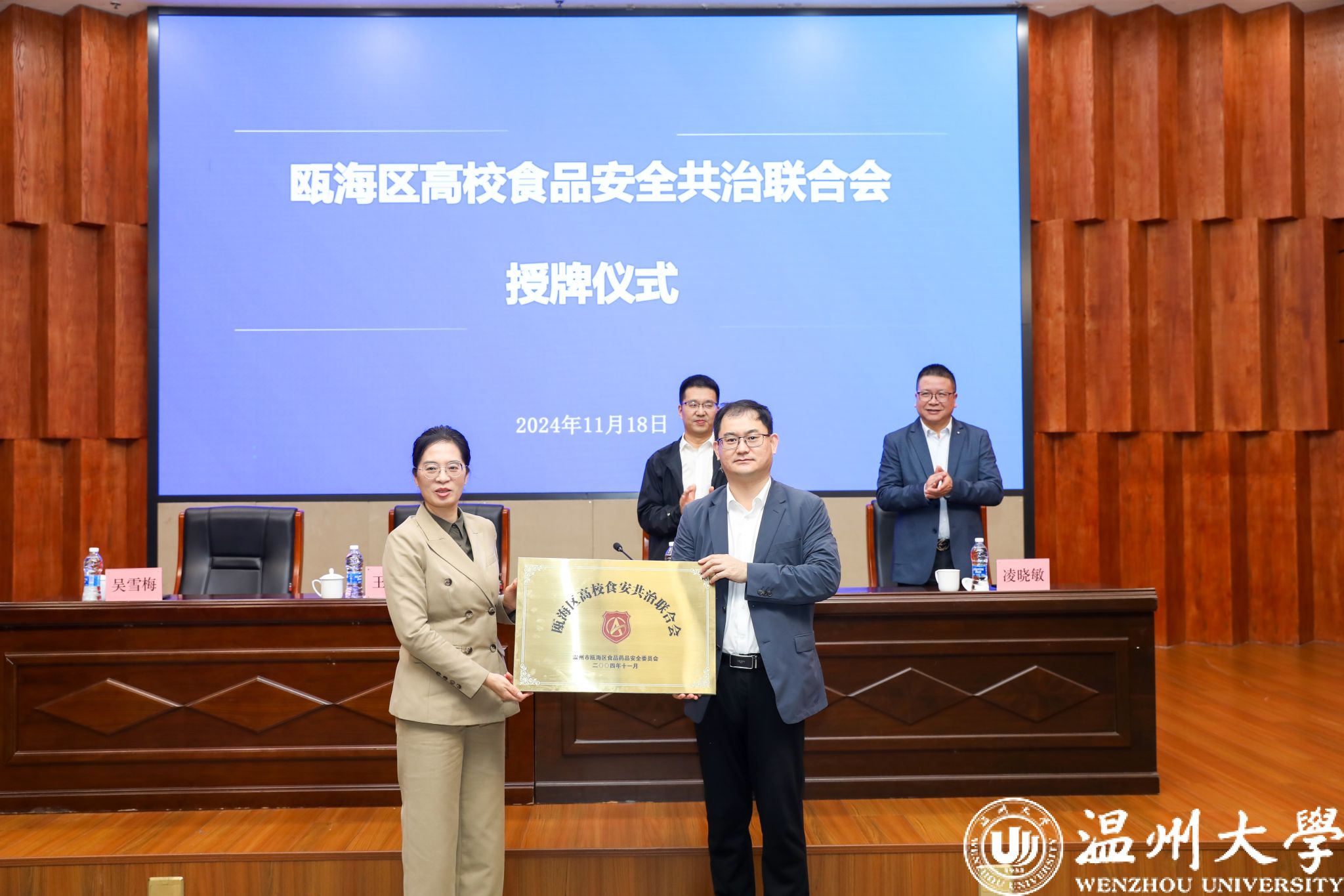 会上,还进行了瓯海区高校食品安全共治联合会授牌仪式和“食品安全指导师”聘任仪式。