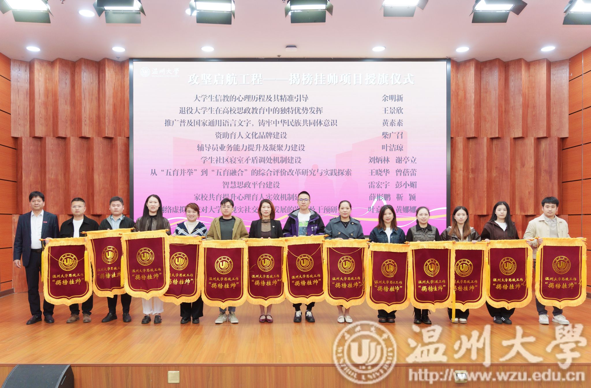 现场还举行了辅导员工作室授牌仪式和思政工作项目揭榜挂帅授旗仪式。辅导员工作室和揭榜挂帅项目团队将进一步聚焦学生工作的重点和难点问题,不断推动辅导员队伍创新发展。