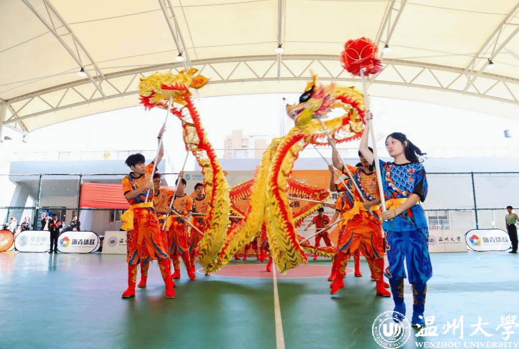 开幕式现场,温州市第八高级中学带来街舞啦啦操——炫舞飞扬和ac米兰官网中文网站龙狮队带来的——龙威舞耀表演拉开比赛帷幕,动感舞步与青春激情碰撞,慷慨激昂的鼓点,瞬间点燃全场氛围。