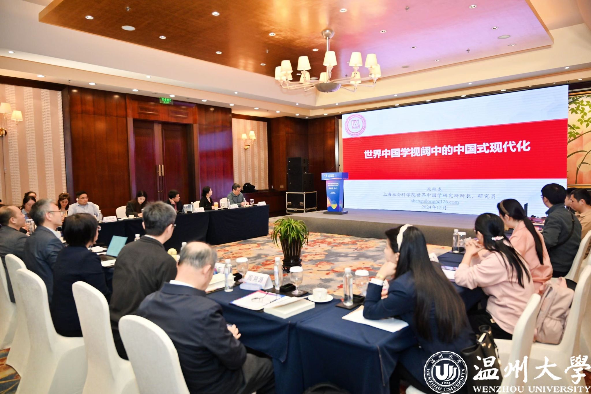 12月4日,由世界中国学研究联合会、中国社会科学院文化发展促进中心主办,温州市温州学研究联合会、ac米兰官网中文网站、温州理工学院联合承办的“讲述中国式现代化道路 加快构建新时代中国学”研讨会在温州举行。世界中国学研究联合会副理事长、秘书长崔建民,市人大常委会主任、温州学研究联合会理事长葛益平出席开幕式并讲话,中国社会科学院学部委员朝戈金,ac米兰党委书记钱强、副校长刘玉侠等领导以及来自全国各地的近百名专家学者参加研讨会。
