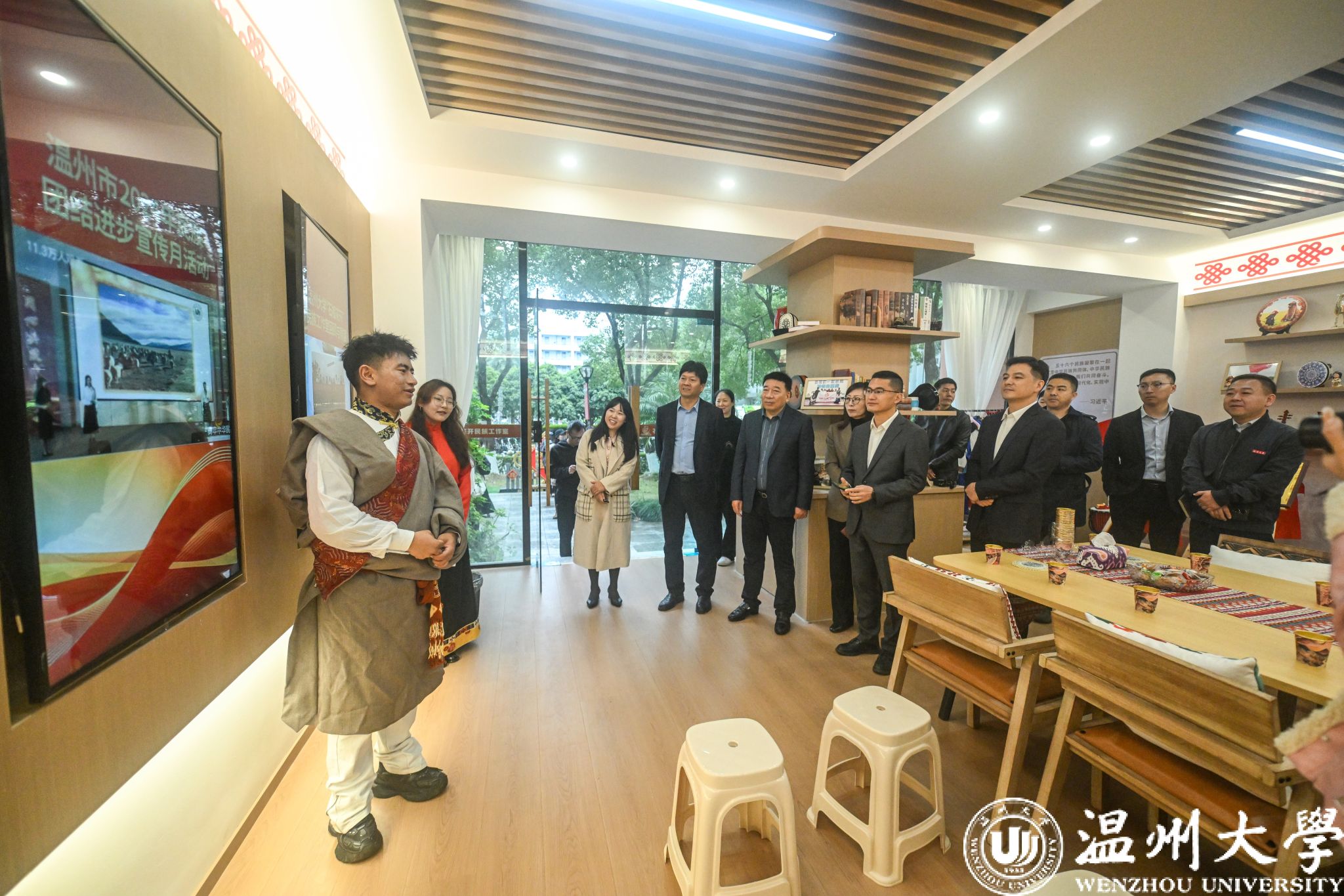 工作室负责人介绍工作室前期建设与发展情况,并带领在场师生参观“温情榴园”石榴红家园和“石榴花开”民族工作室。
