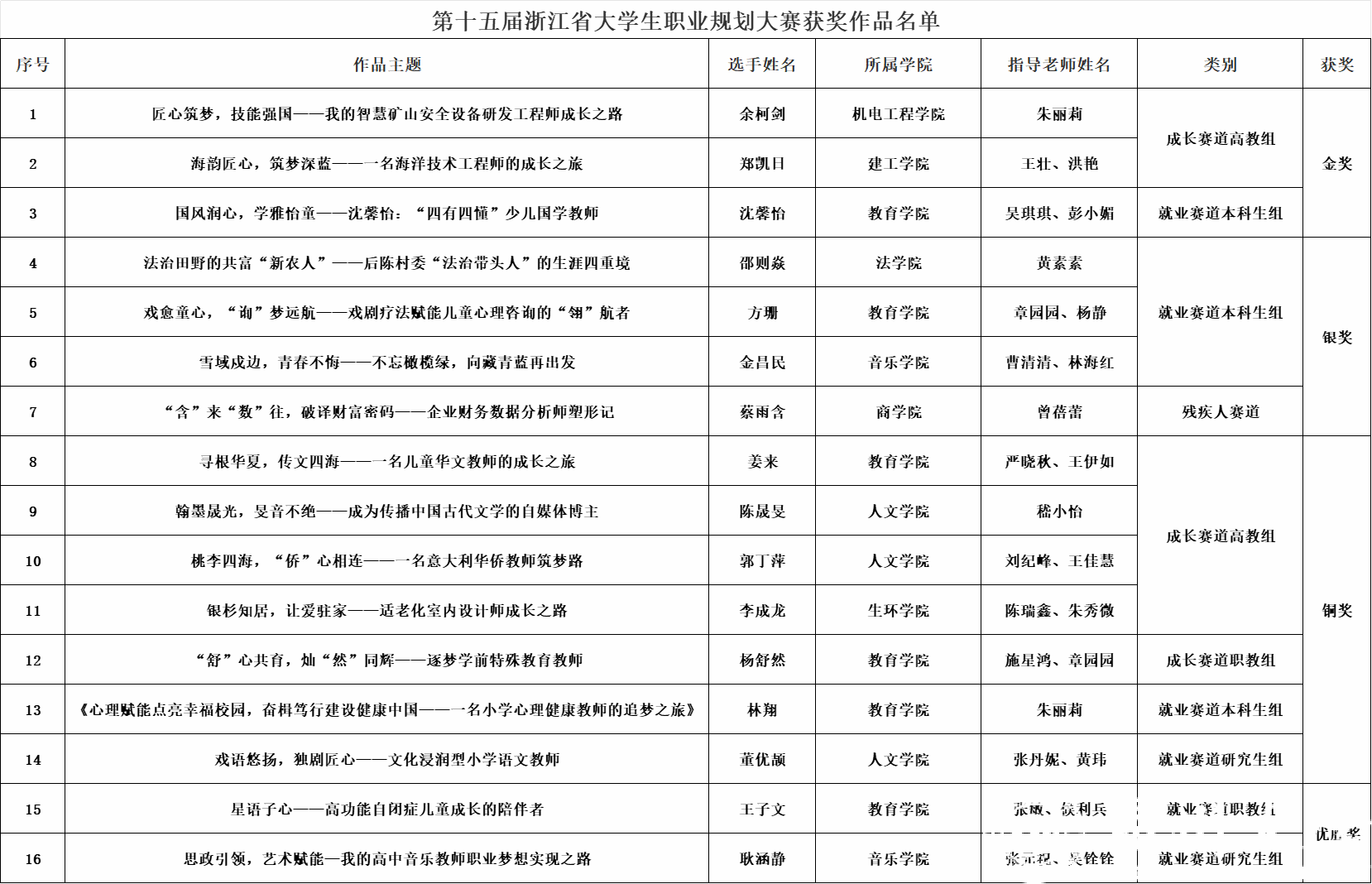 12月25日至27日,由省教育厅主办,省教育发展中心和浙江经济职业技术学院承办的“中行杯”第十五届浙江省大学生职业规划大赛在杭州举行。经过激烈角逐,ac米兰共斩获3金、4银、7铜,5位老师被授予大赛优秀指导老师,学校蝉联优秀组织奖。