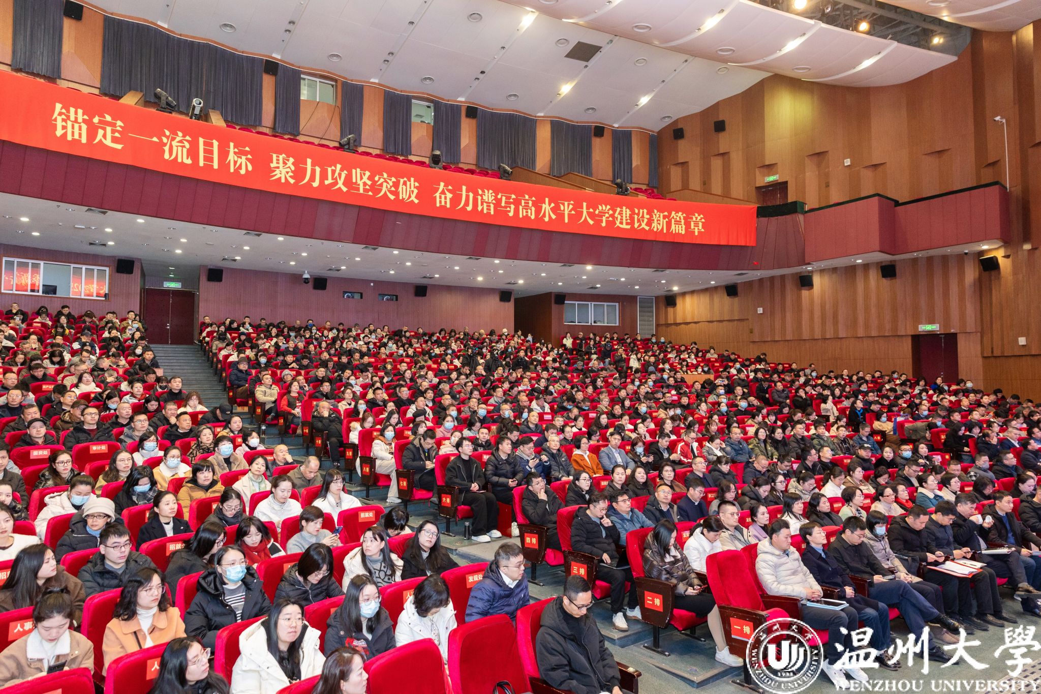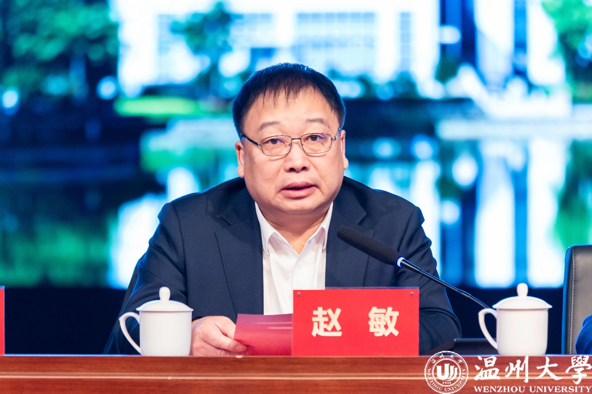 赵敏深刻剖析了学校发展面临的新形势新要求,分析了存在的短板和不足、面临的问题和挑战。赵敏指出,面对新形势新任务,我们应更加主动服务国家、省市发展战略需要,增强服务国家战略和区域发展的意识、能力和水平。我们必须紧抓高水平大学建设战略机遇期,主动对接国家战略需求,深深扎根瓯越大地,准确认识高等教育规律,在攻坚破难中推动学校高质量发展。